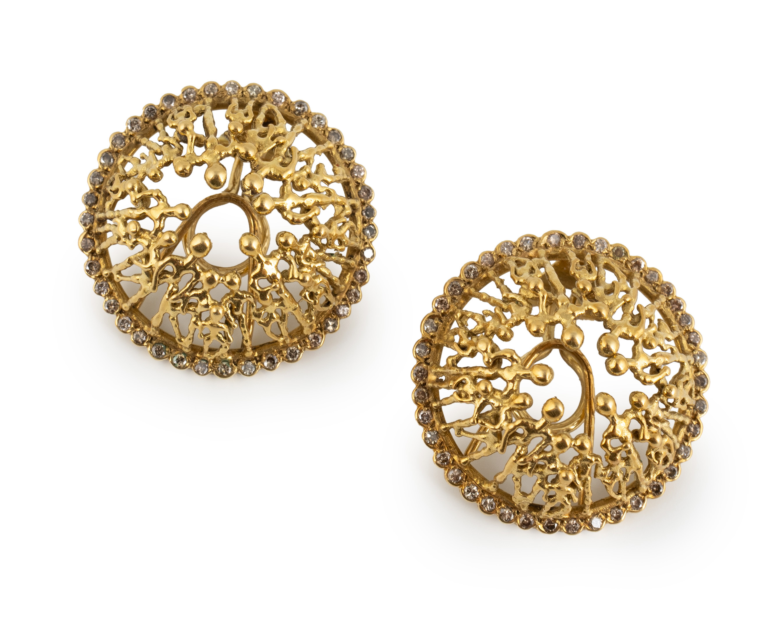 By Stuart Devlin, a pair of modern 18-carat gold and diamond figured earrings,