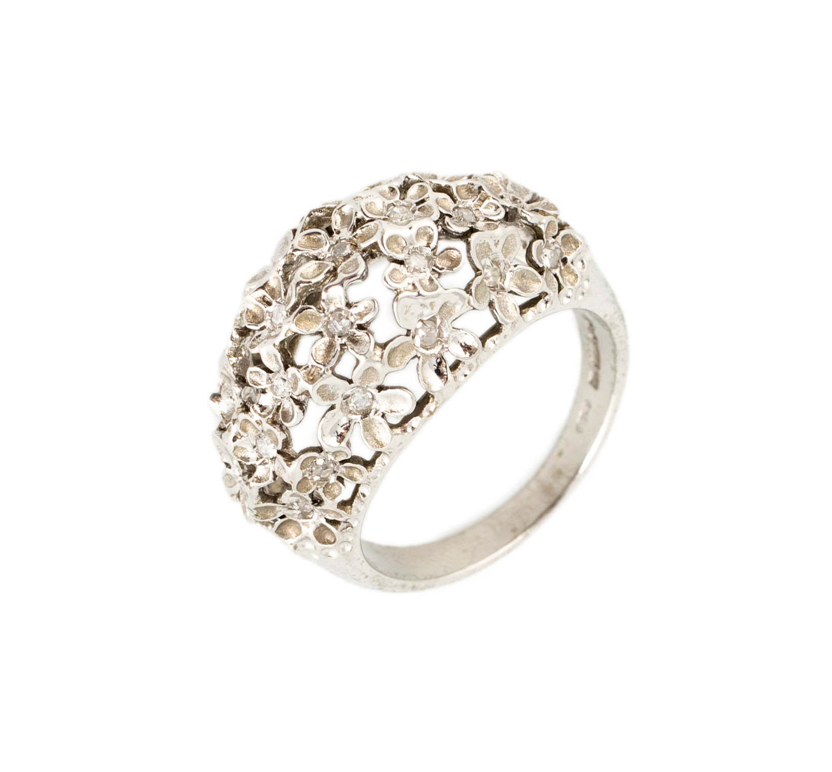 By Stuart Devlin, a modern 18-carat white gold and diamond flower ring,