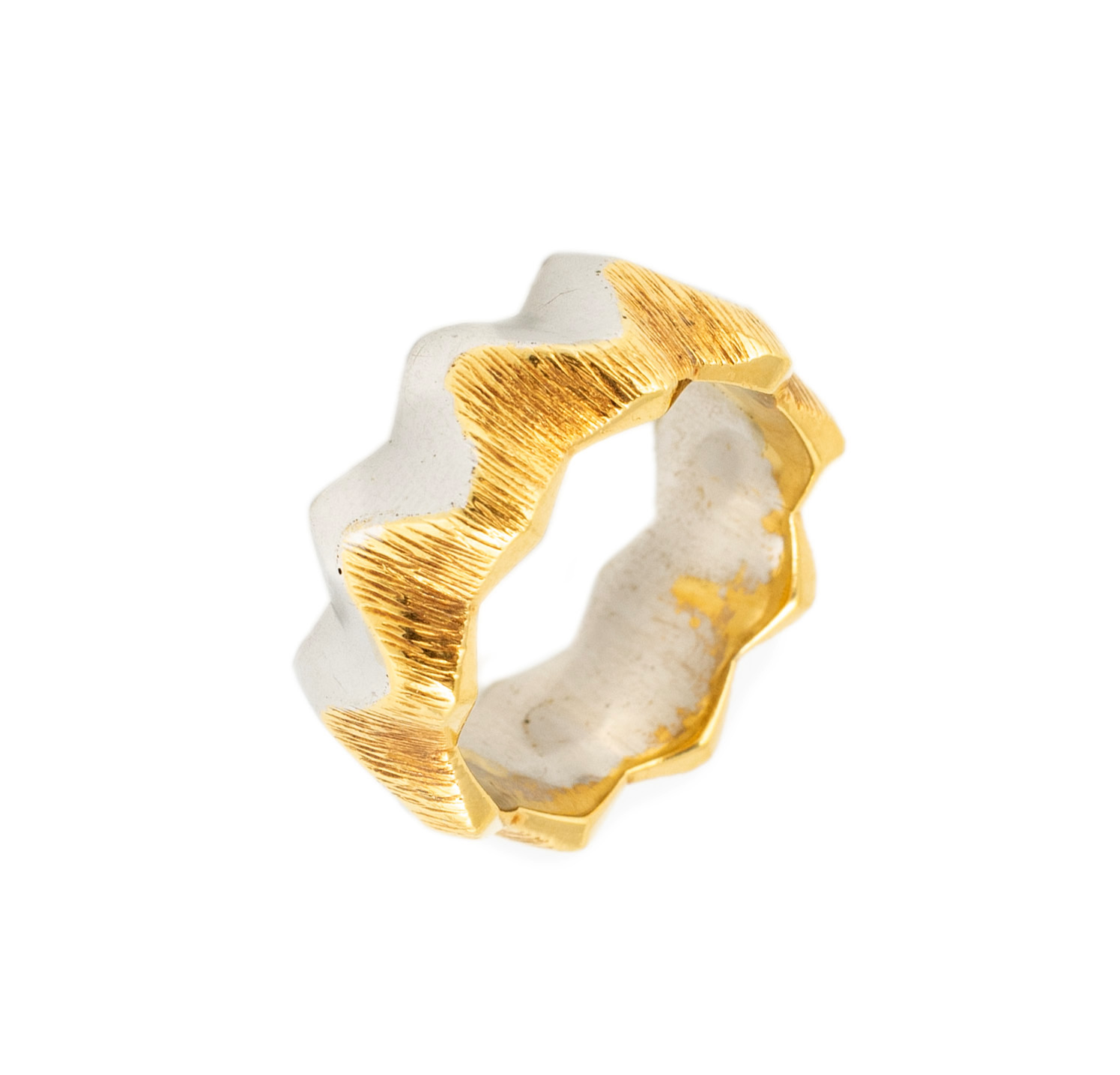 By Stuart Devlin, a modern 18-carat two-colour gold wavy pattern ring,