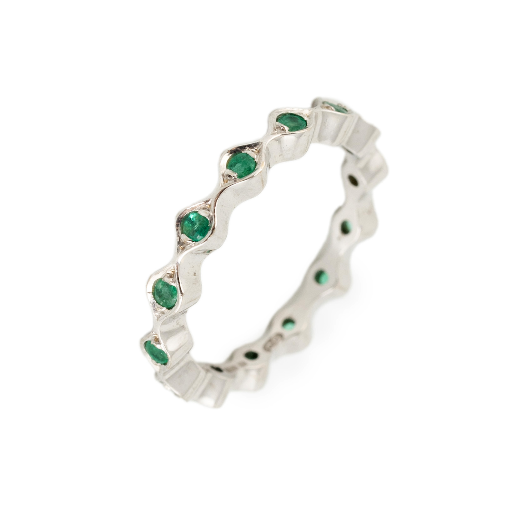 By Stuart Devlin, a modern 18-carat white gold and emerald ring,