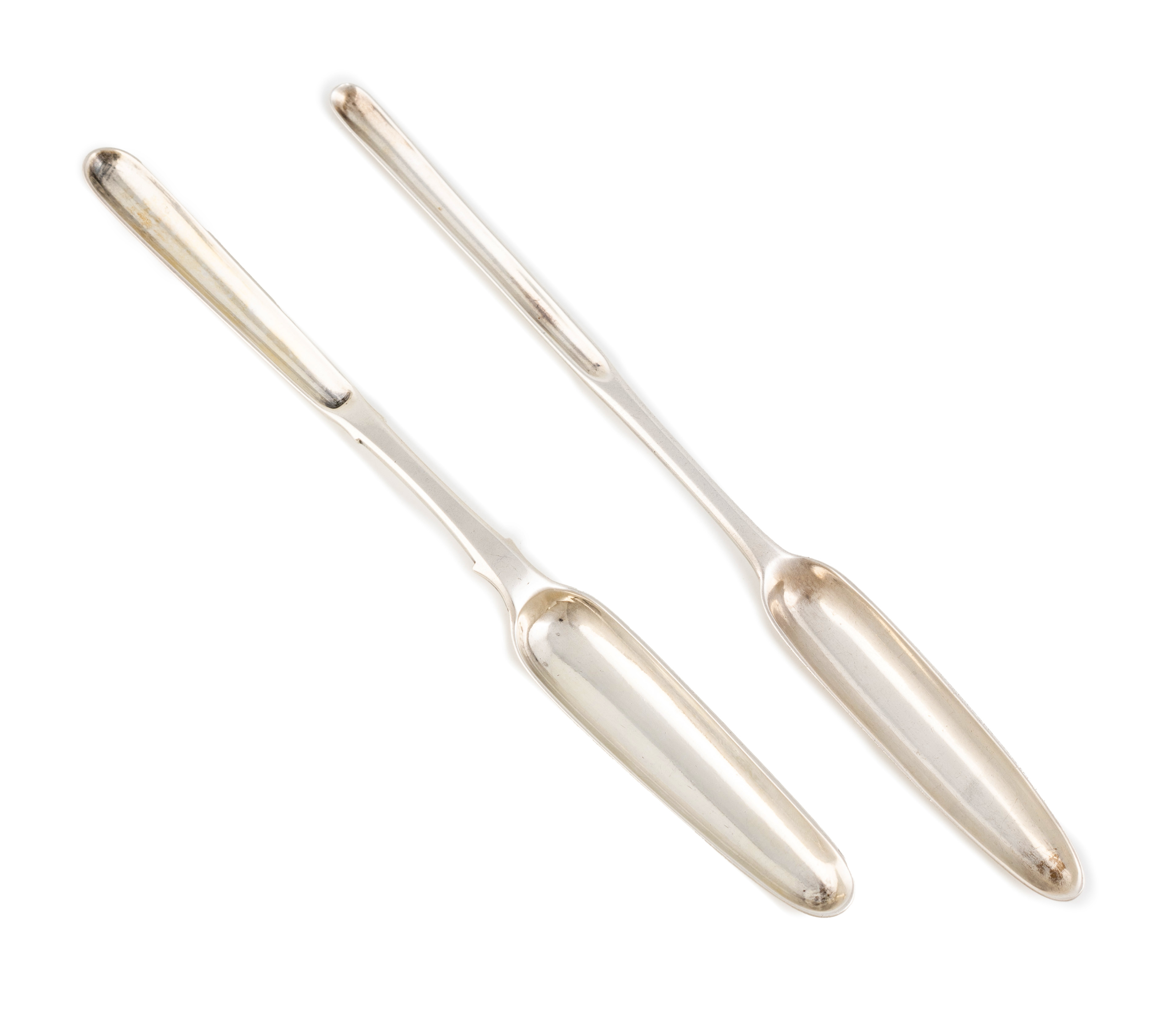 conventional form, plus another George III provincial silver Fiddle pattern marrow scoop, by Barber and Whitwell, York 1819, approx. total weight 3.5oz. (2)