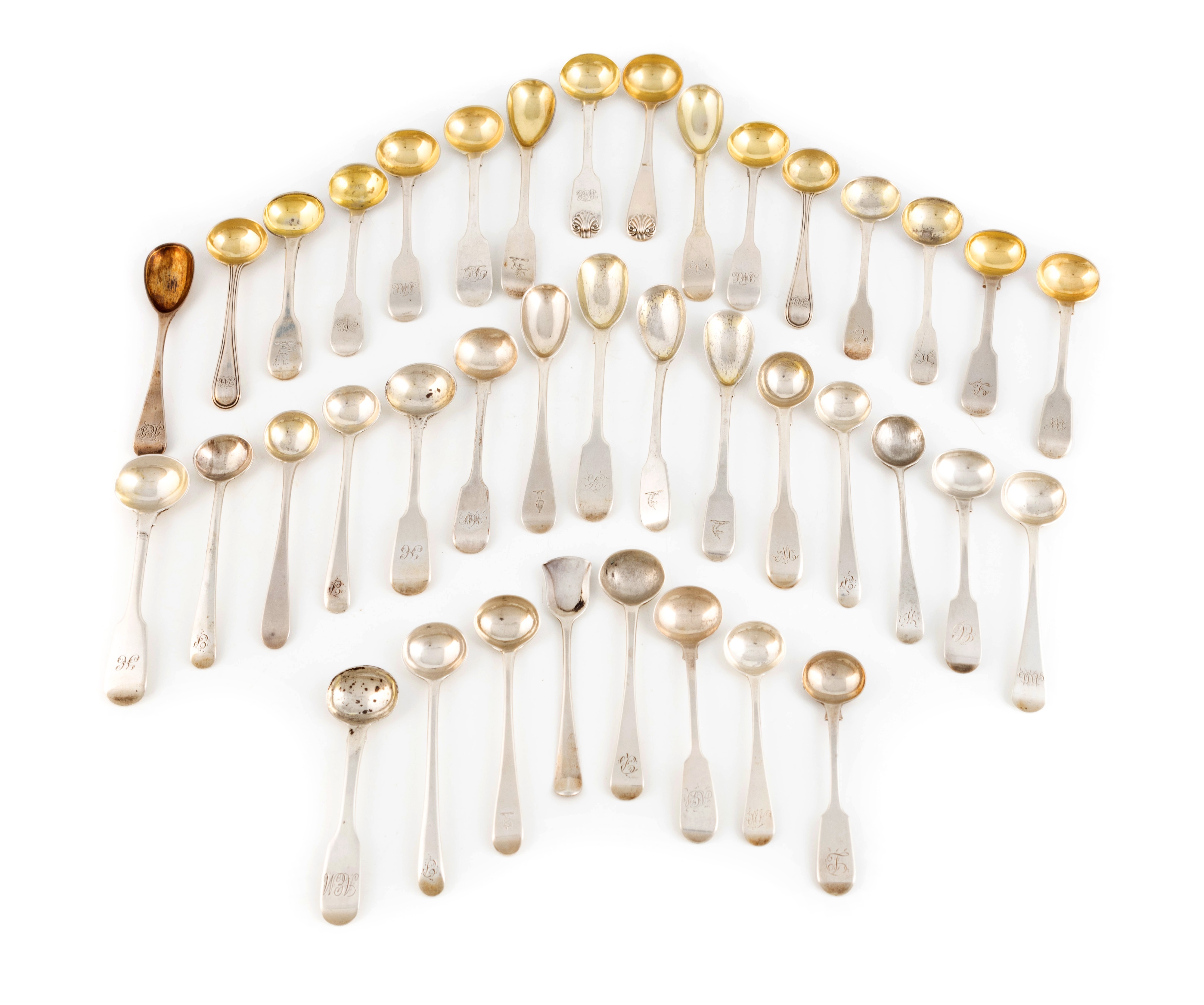 A collection of antique provincial silver condiment spoons,
