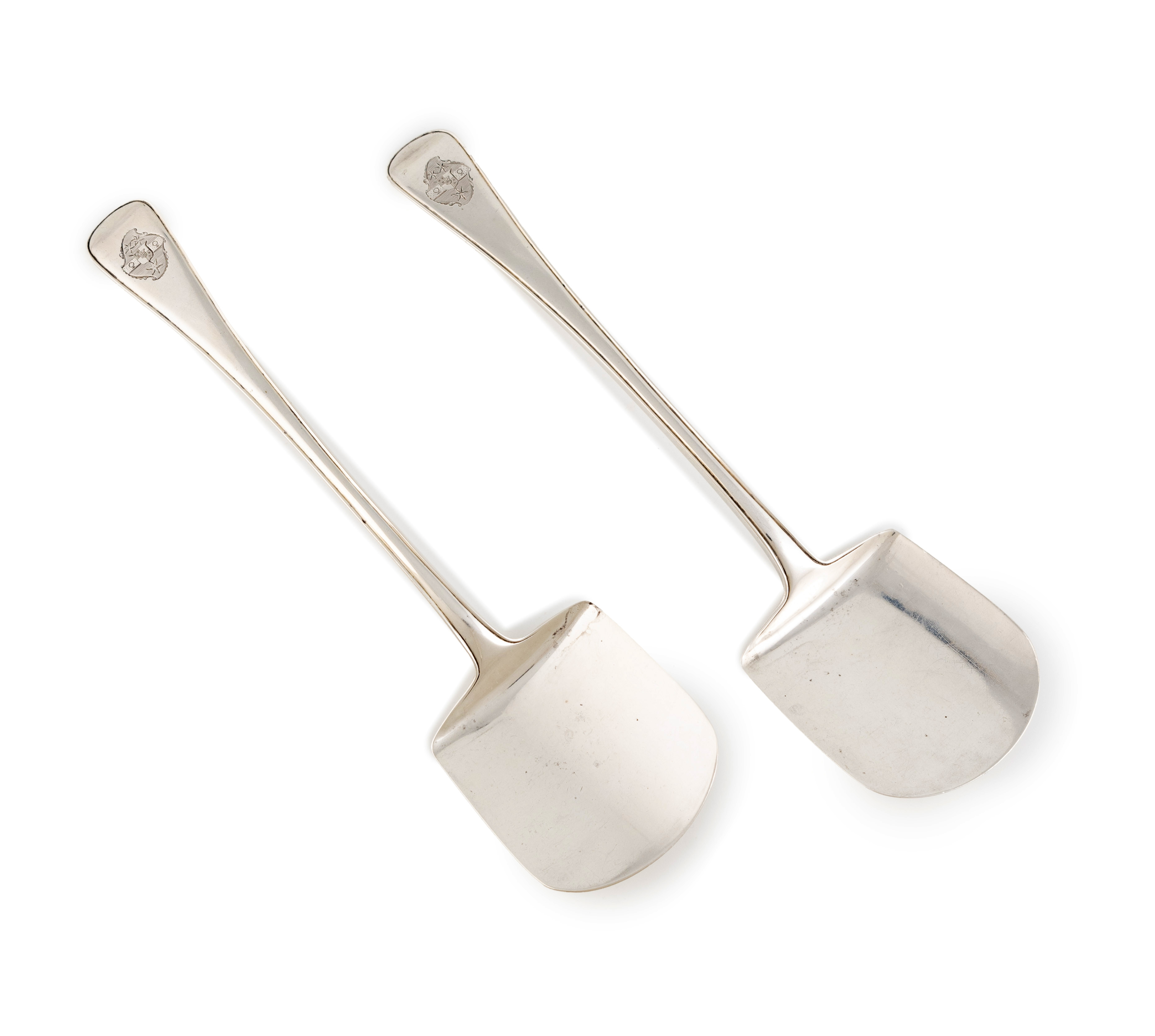 A pair of George III silver Old English Thread pattern ice cream spades,