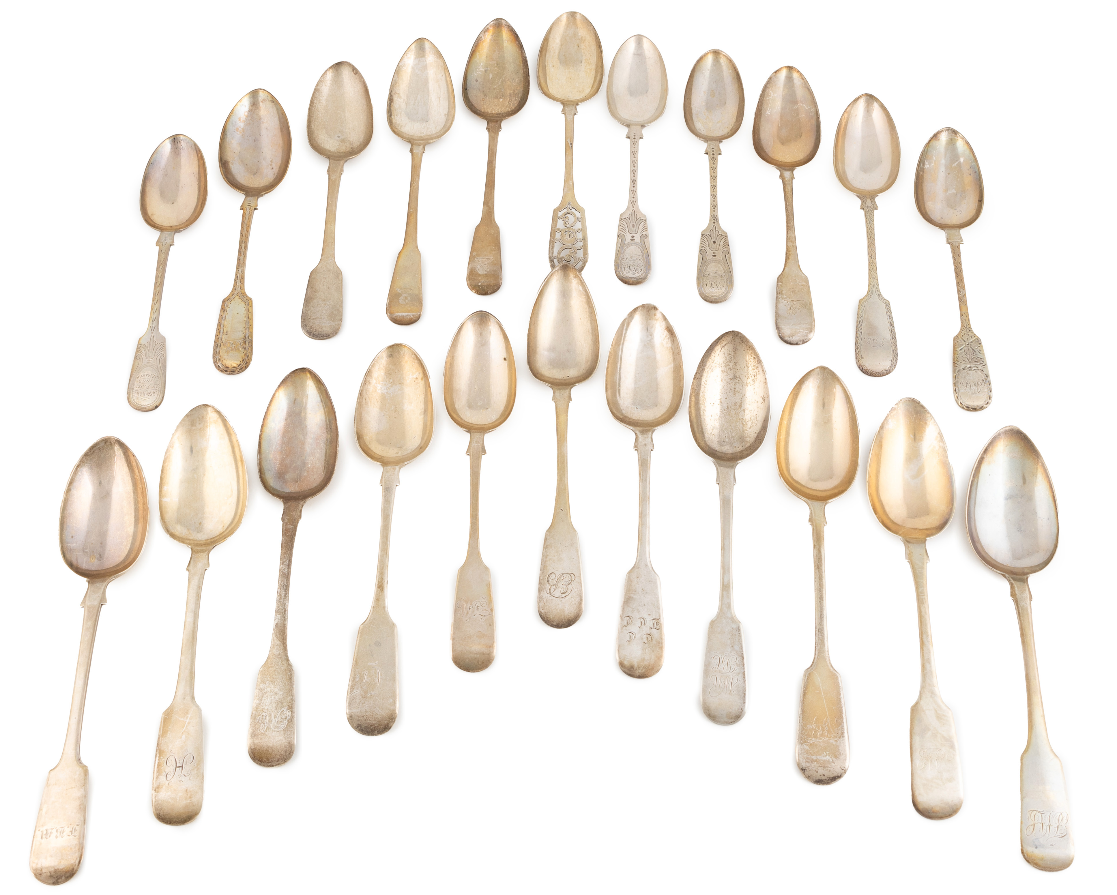 some with engraved decoration, on pierced, approx. total weight 47oz. (22)