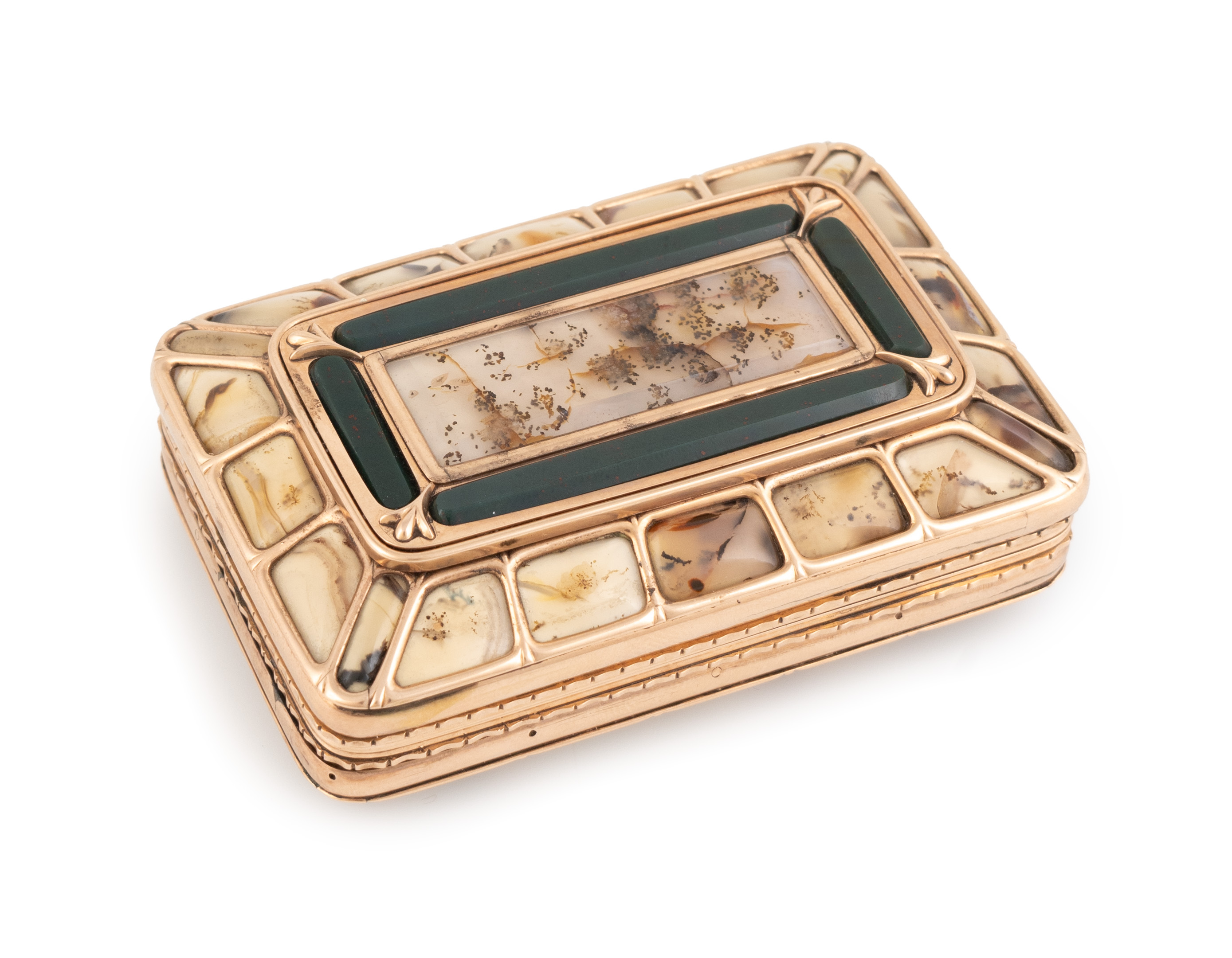 An early-19th century Italian hardstone and gold-mounted snuff box,