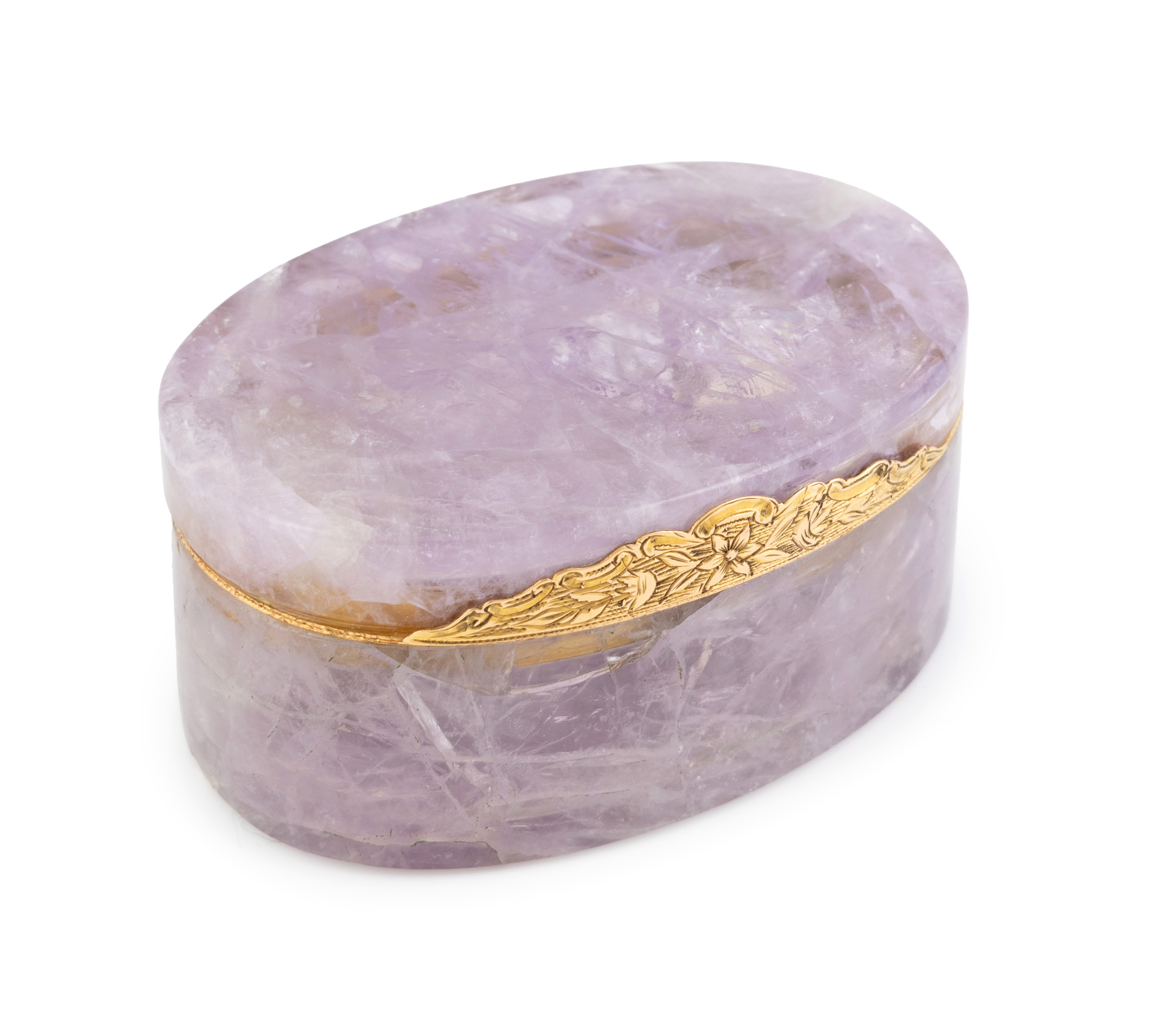 A late-18th century German gold-mounted amethystine quartz snuff box,