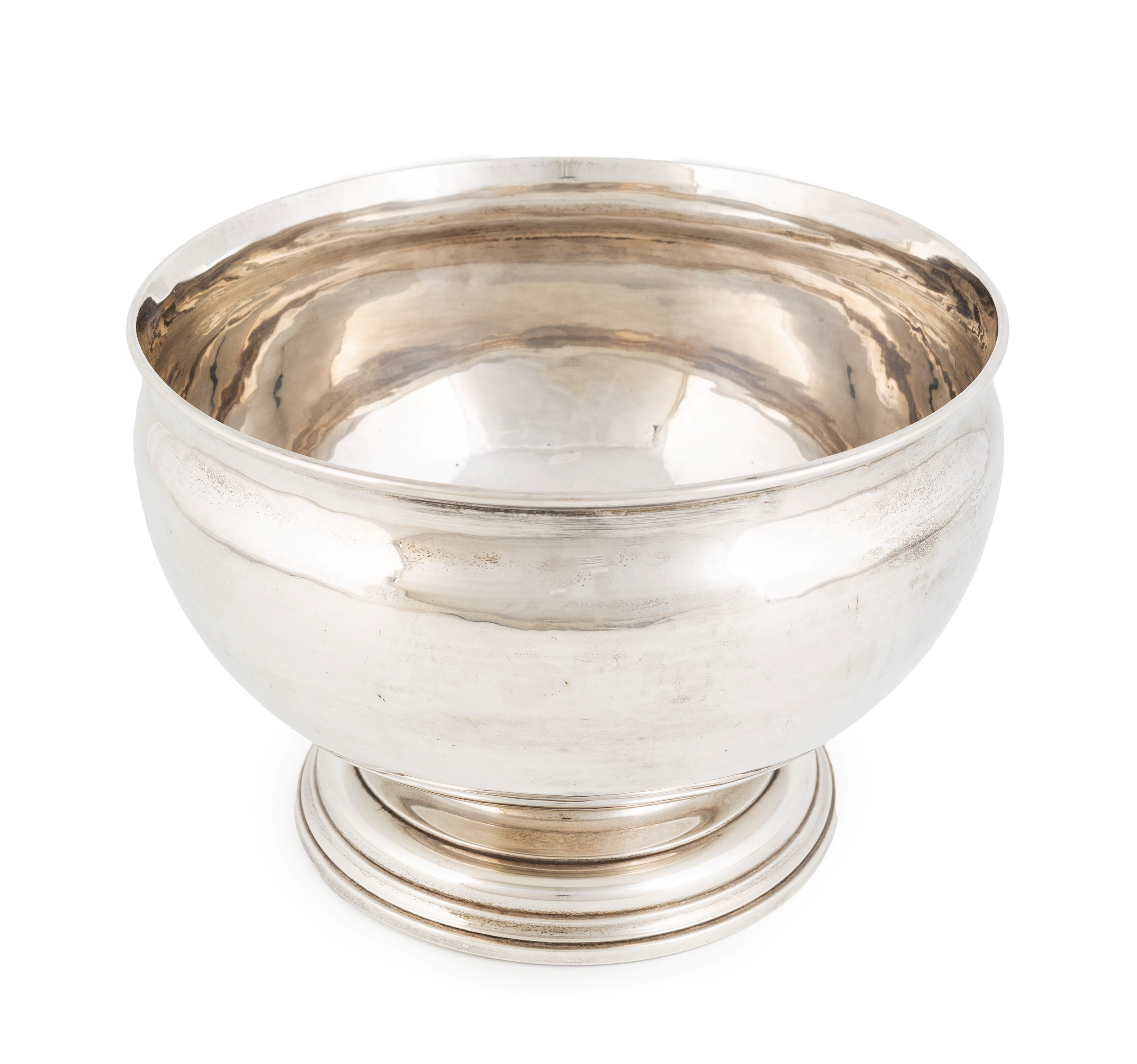 plain circular form, on a raised circular foot, diameter 22.5cm, approx. weight 33oz.