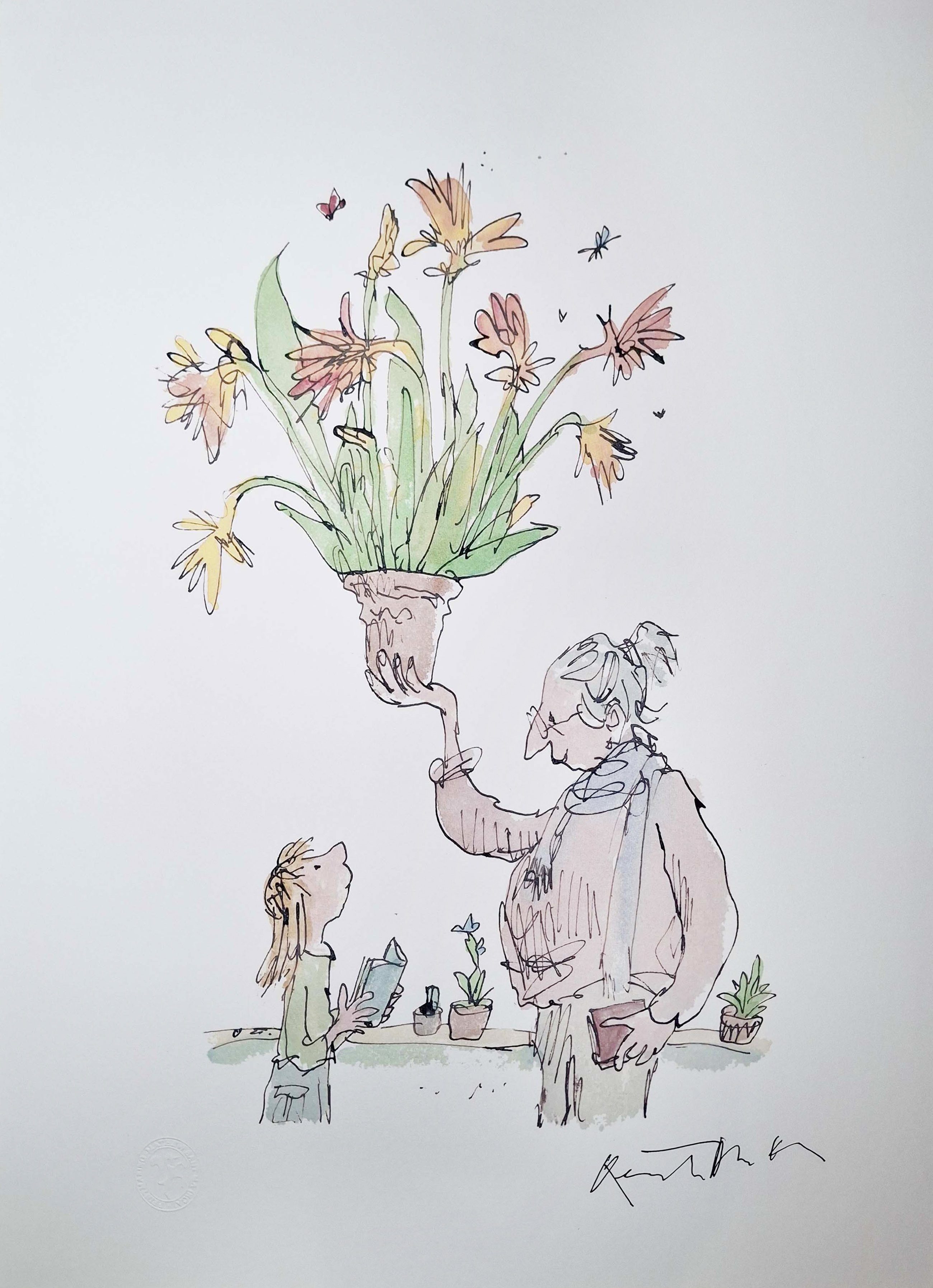 Quentin Blake was born in Sidcup in 1932 and has drawn for as long as he can remember. His professional life started with cartoons submitted to Punch and The Spectator, the earliest of which appeared when he was 16 and still at school. He is author of many of his own books – Mister Magnolia, Clown – but is also known for his collaborations with other writers such as Russell Hoban, Michael Rosen, John Yeoman, and most famously, Roald Dahl. He was appointed the first Children’s Laureate in 1999, is a CBE and an honorary doctor of Cambridge University. He received a knighthood for ‘services to illustration’ in the New Year’s Honours for 2013, and was appointed ‘Companion of Honour’ in the Platinum Jubilee Honours in 2022.