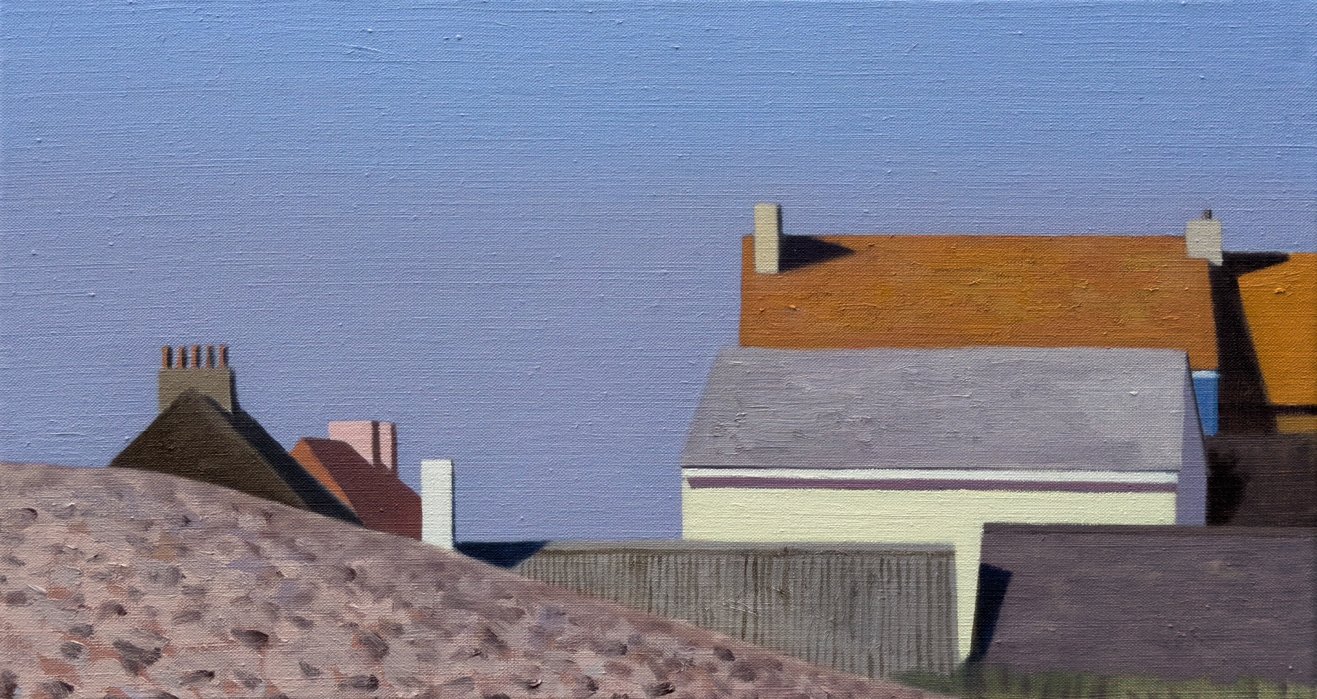 I have worked mainly from landscape, invariably including buildings, from subjects discovered in West Dorset where I now live. In particular, West Bay and Portland have provided a rich supply of material from which I have evolved a personal language.