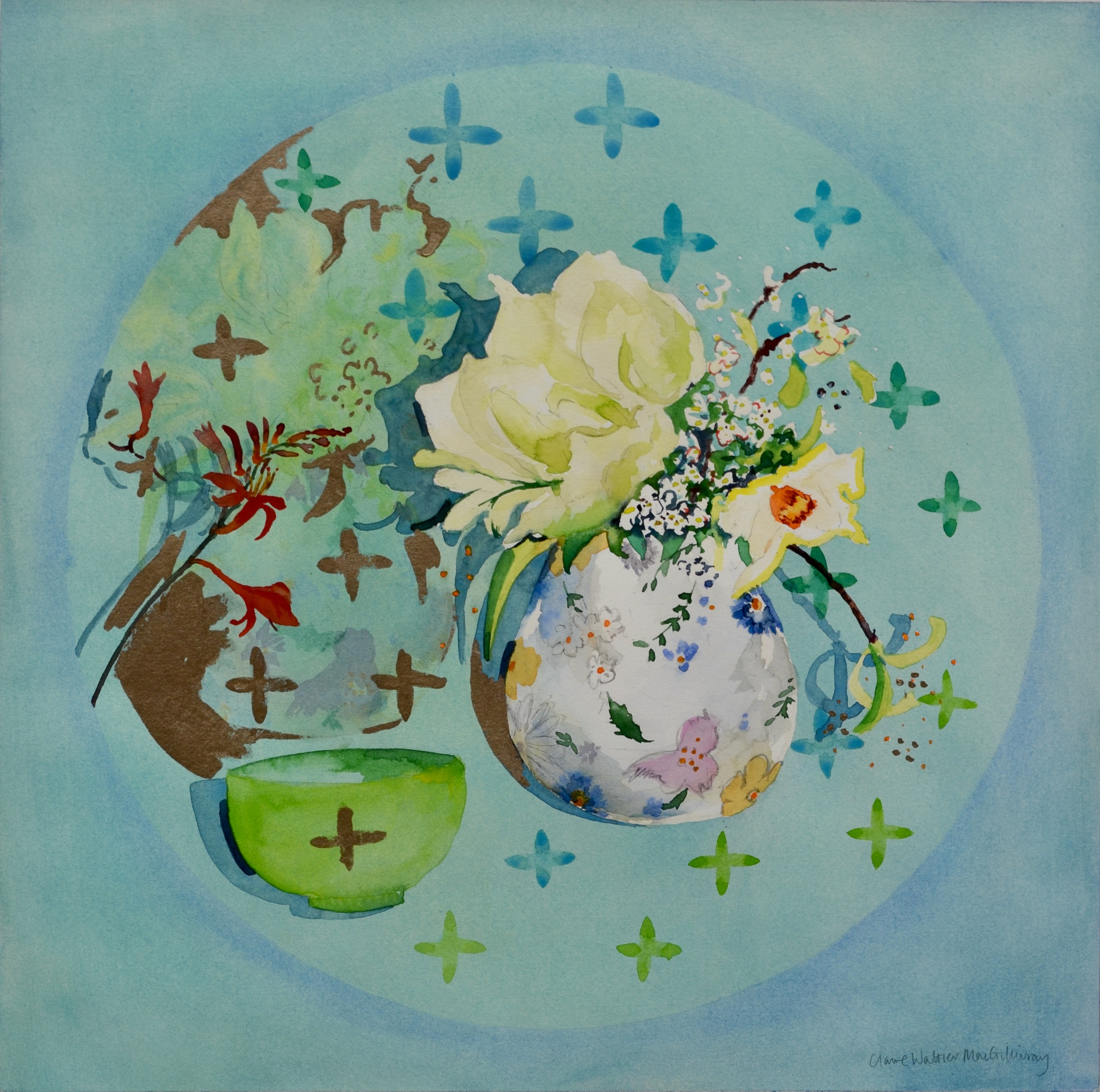 Claire Waltier MacGillivray is a painter living and working in Cheshire. She studied her degree in Fine Art – Painting at Maidstone College of Art. Her approach to painting begins with direct observation, studying the colour, light and structure of flowers through the medium of watercolour. As the work progresses a more intuitive approach comes into play responding to the colour and shapes on the paper and arriving at a playfully balanced composition.
