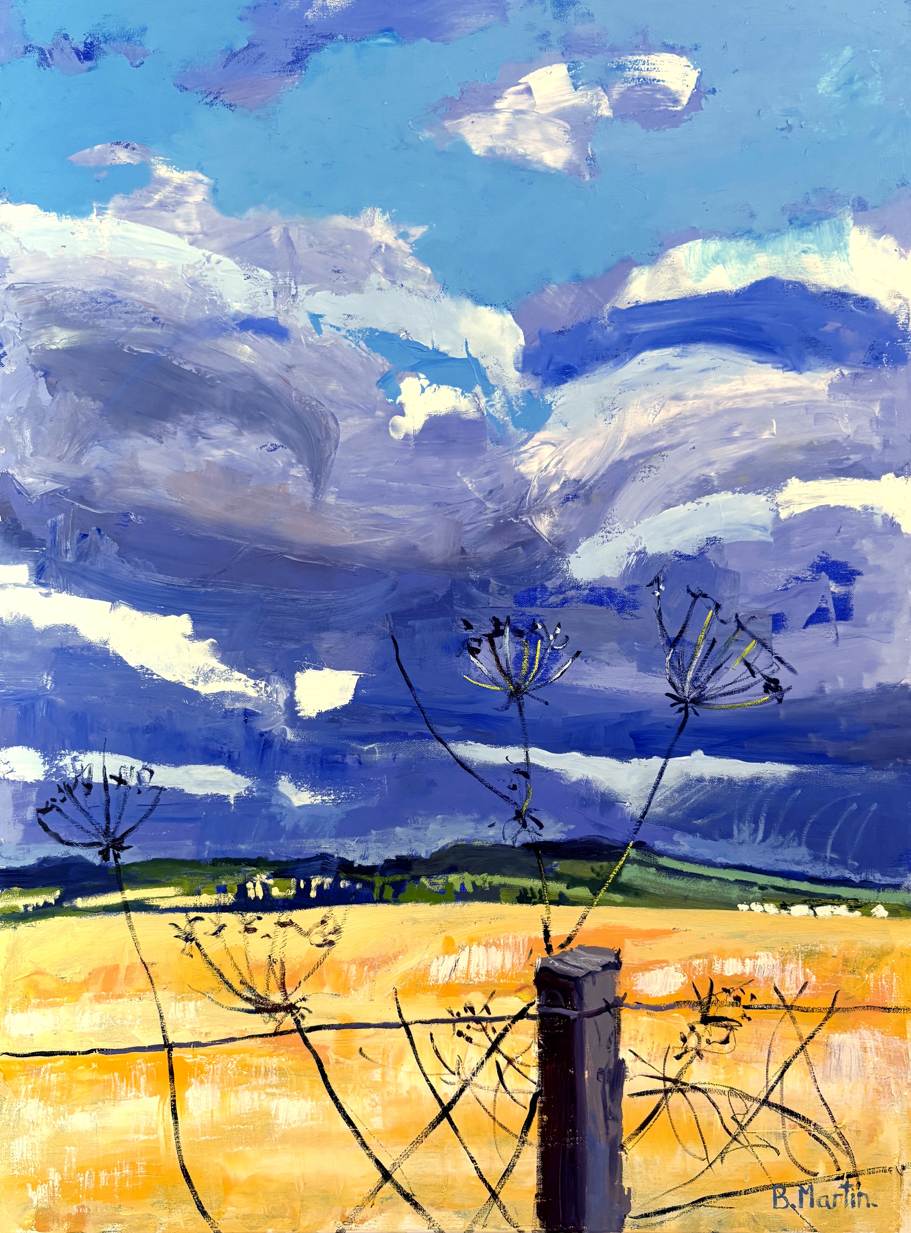 Having trained in Fashion Design at RCA London I ended up as a BBC costume designer and lately took up painting. I get my inspiration from uplifting and life enhancing vistas of big skies and beaches and landscapes.