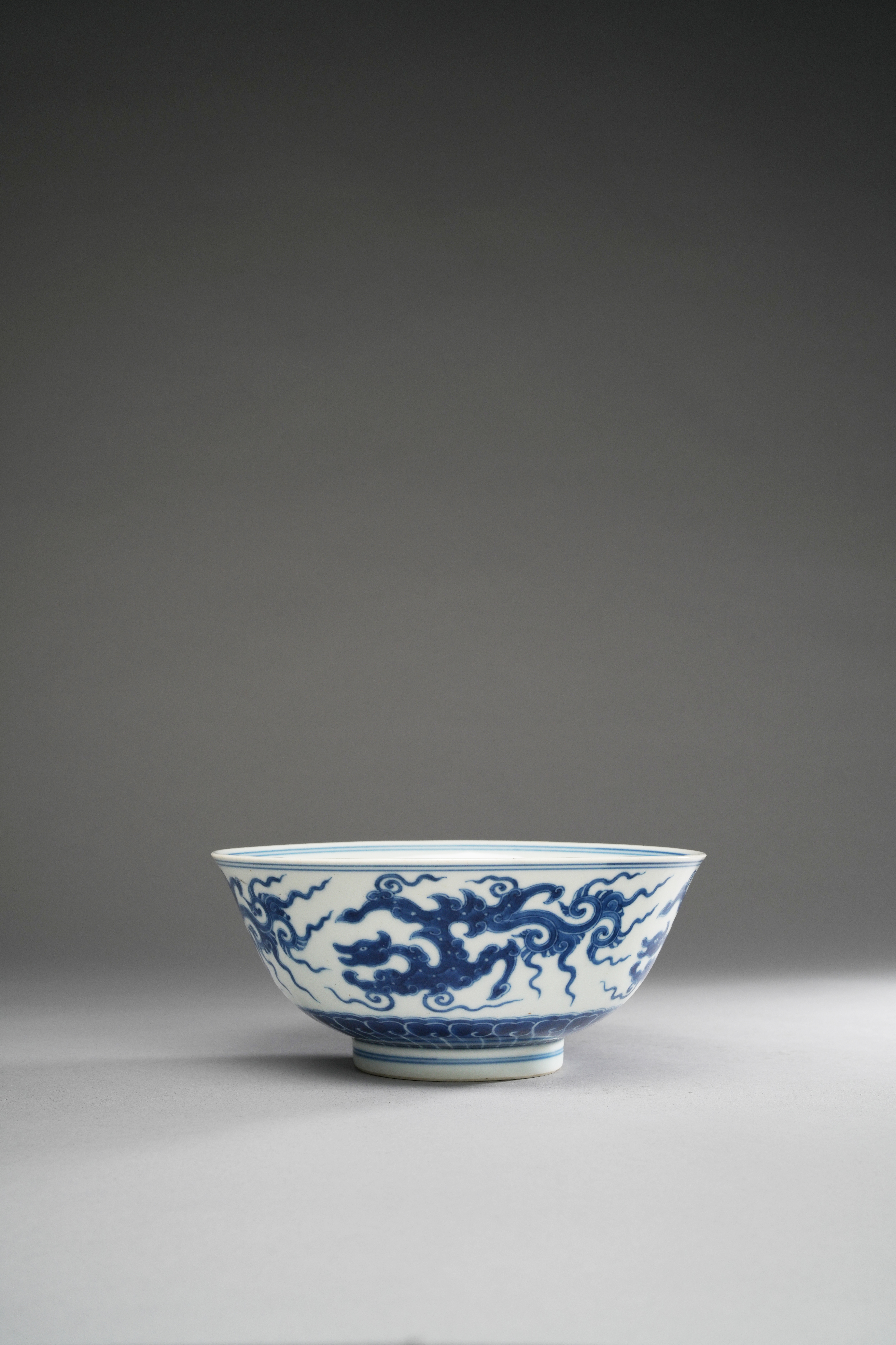 A RARE CHINESE IMPERIAL BLUE AND WHITE 'KUI DRAGON' BOWL