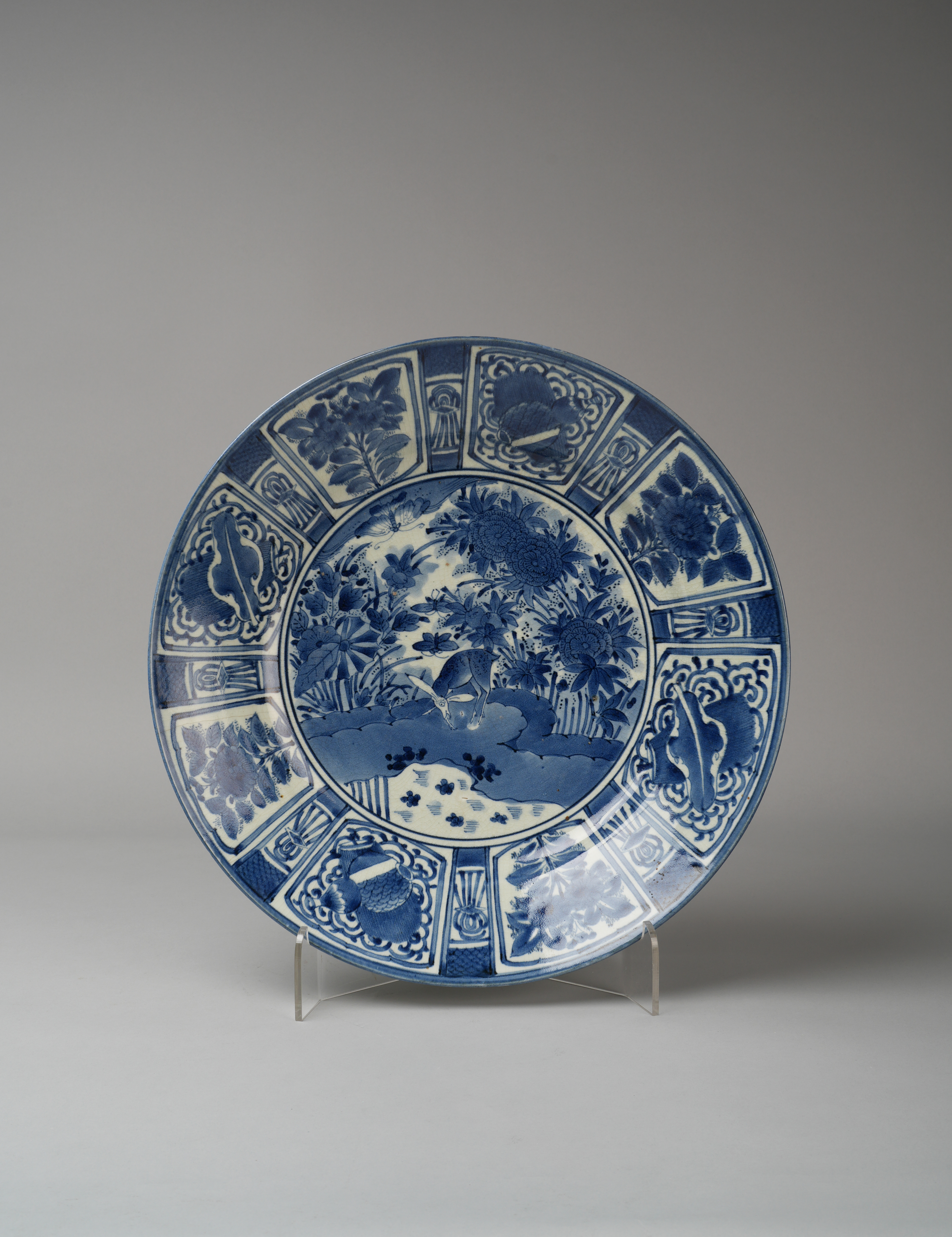A LARGE JAPANESE KRAAK-STYLE BLUE AND WHITE CHARGER