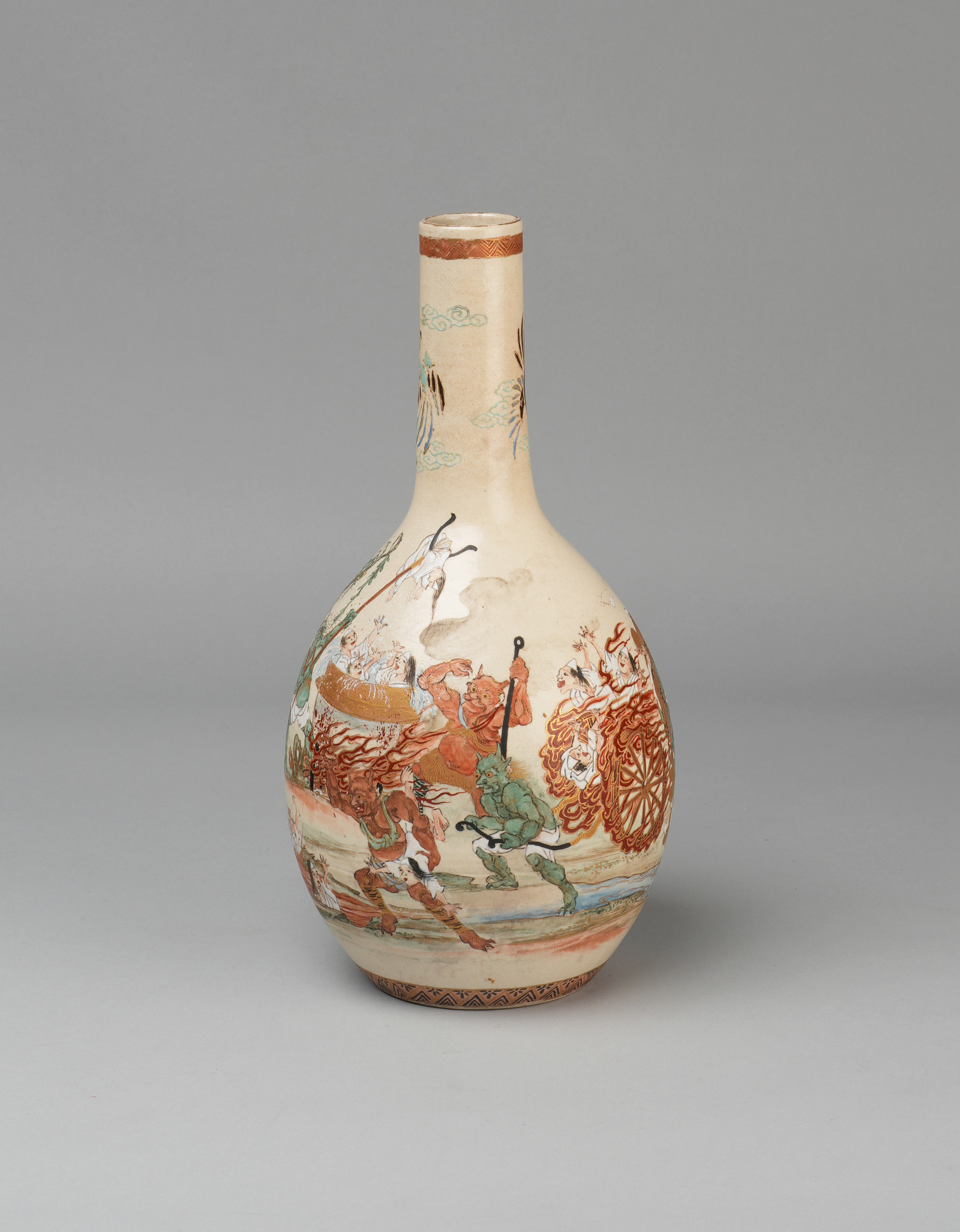 A RARE JAPANESE BOTTLE VASE WITH CHILDREN IN BUDDHIST HELL