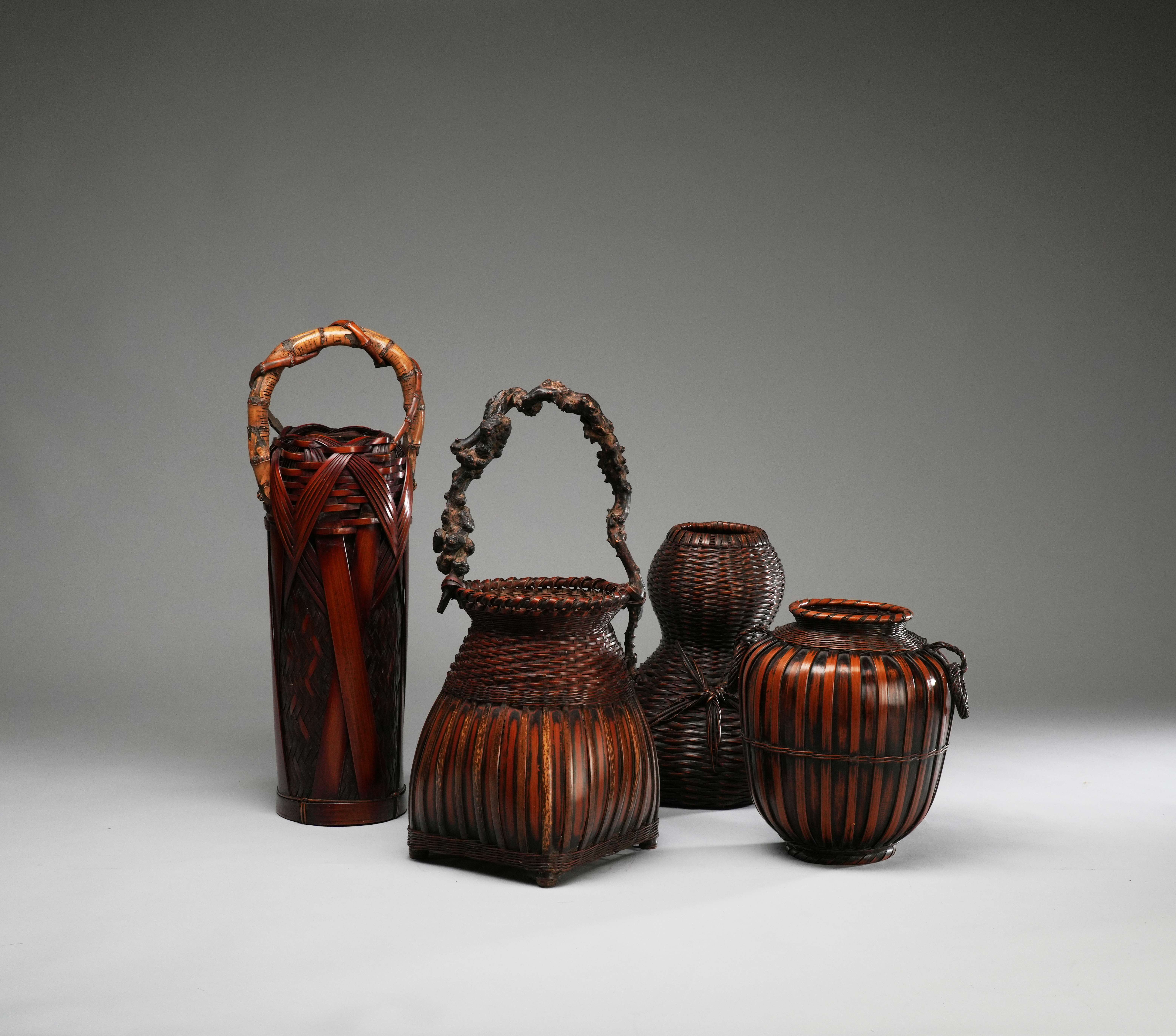 FOUR JAPANESE IKEBANA BAMBOO BASKETS
