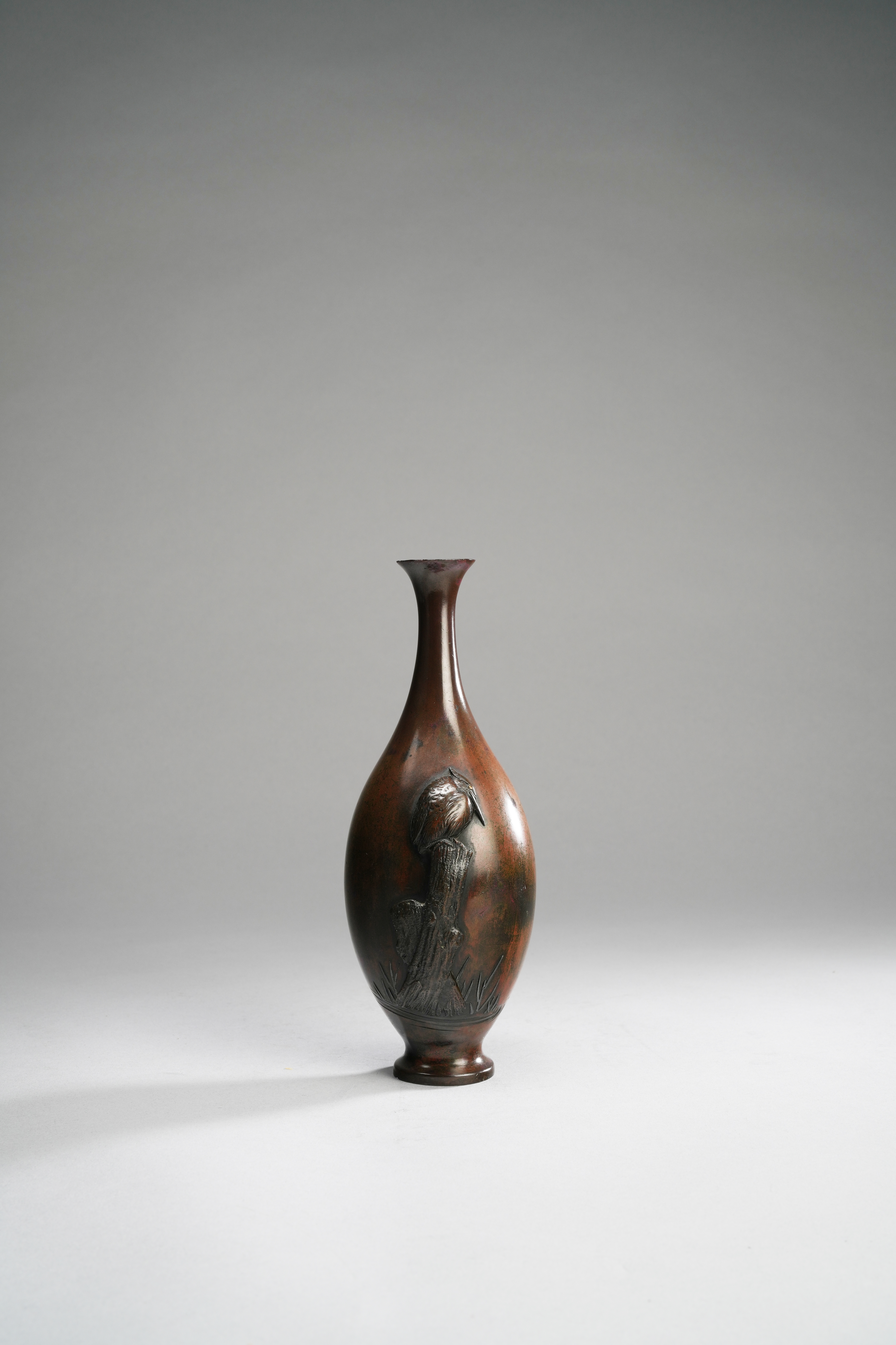 A JAPANESE SILVER-INLAID BRONZE VASE WITH EGRET