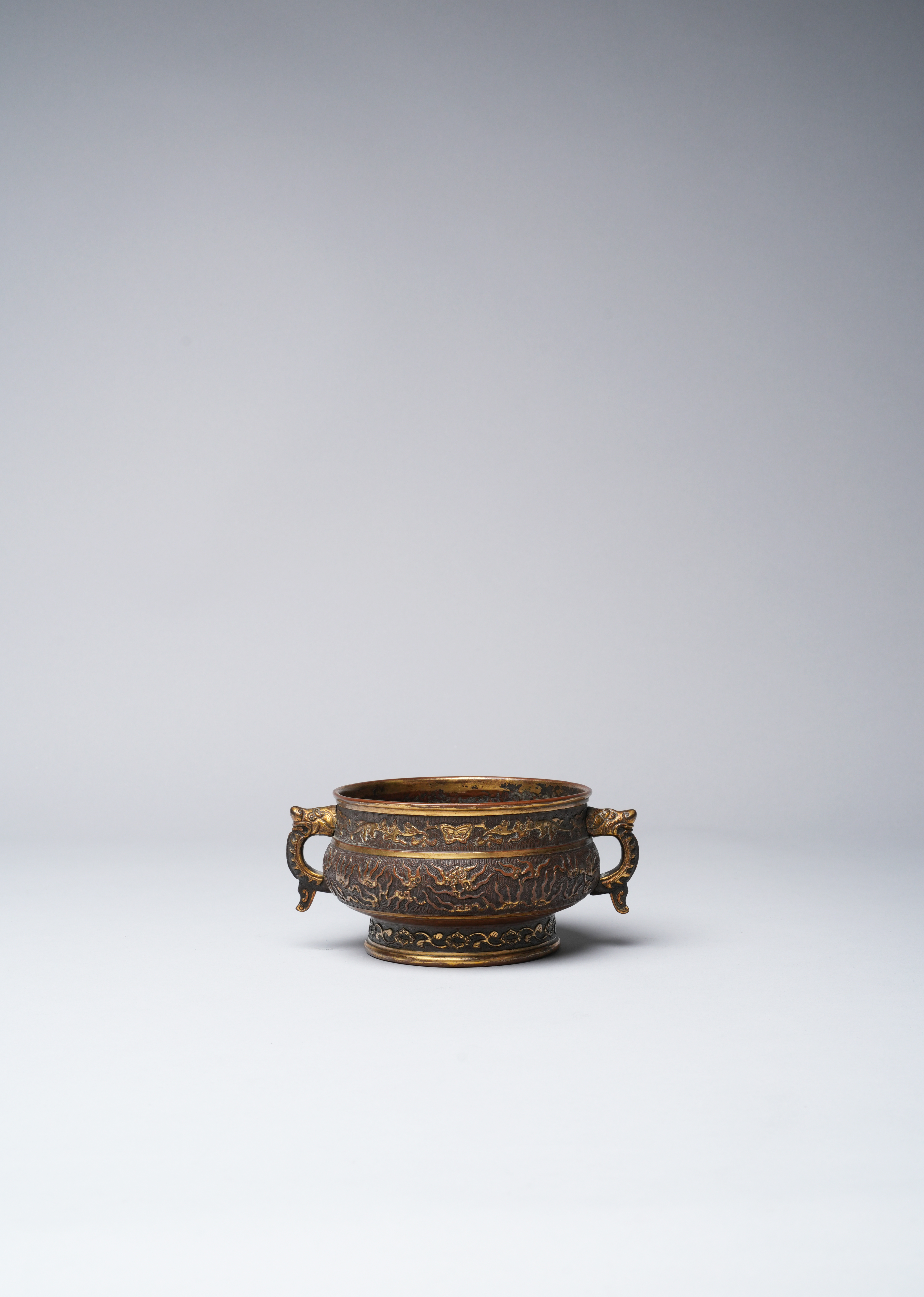 十七世紀 銅局部鎏金獸耳簋式爐