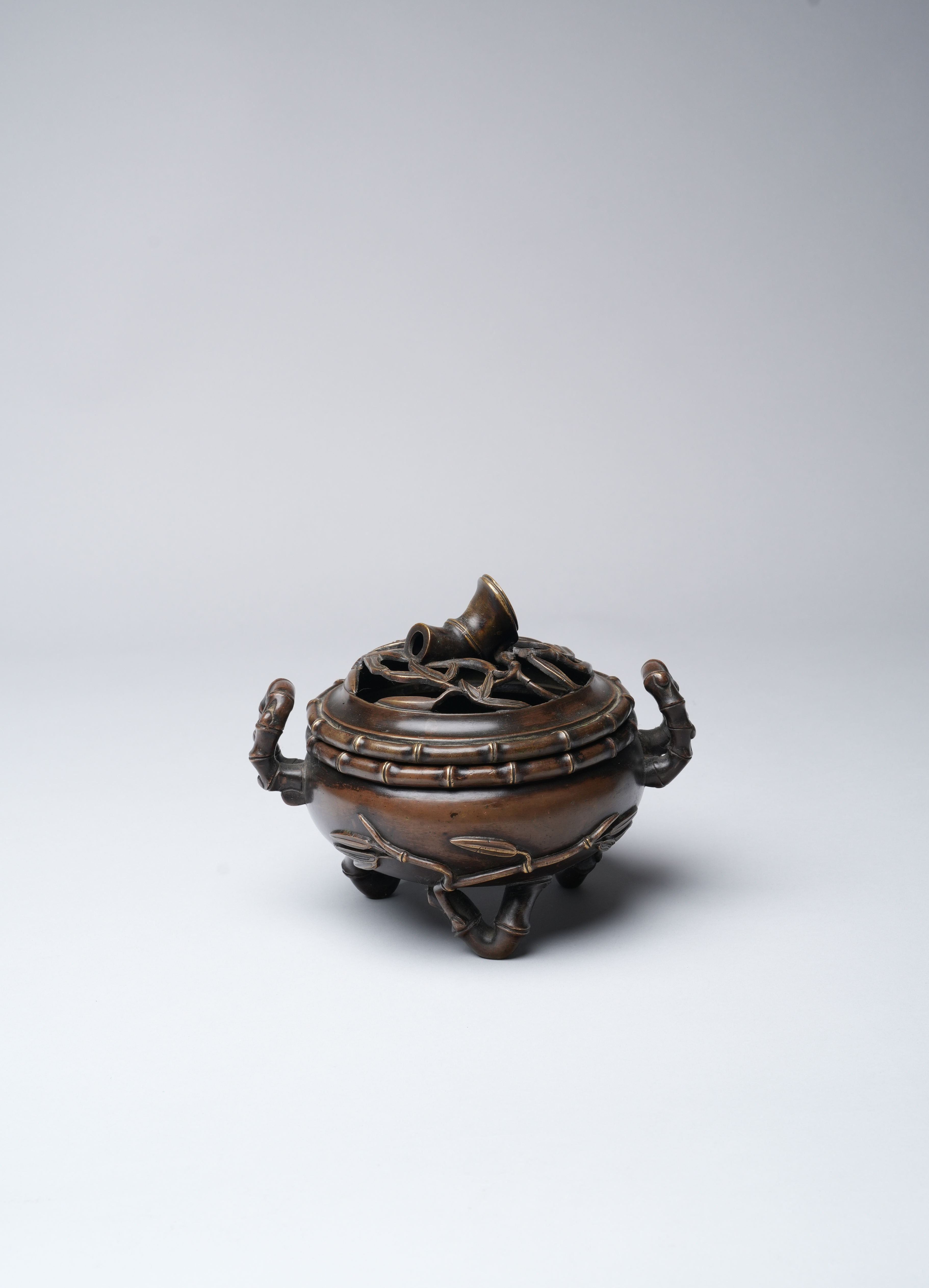 A CHINESE BRONZE 'BAMBOO' INCENSE BURNER AND COVER