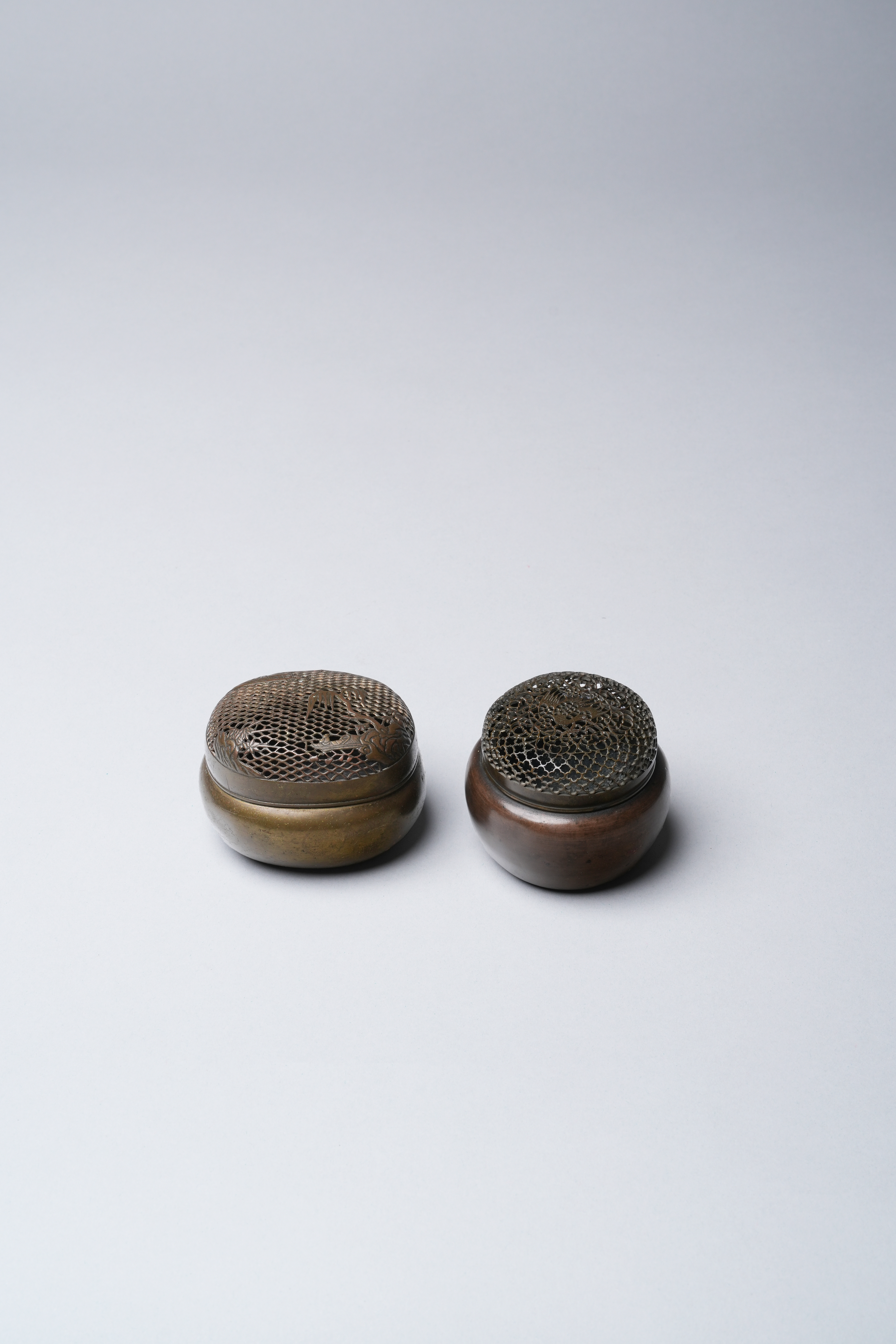 清 銅鏤空山水紋手爐及團鳳紋手爐 一組兩件