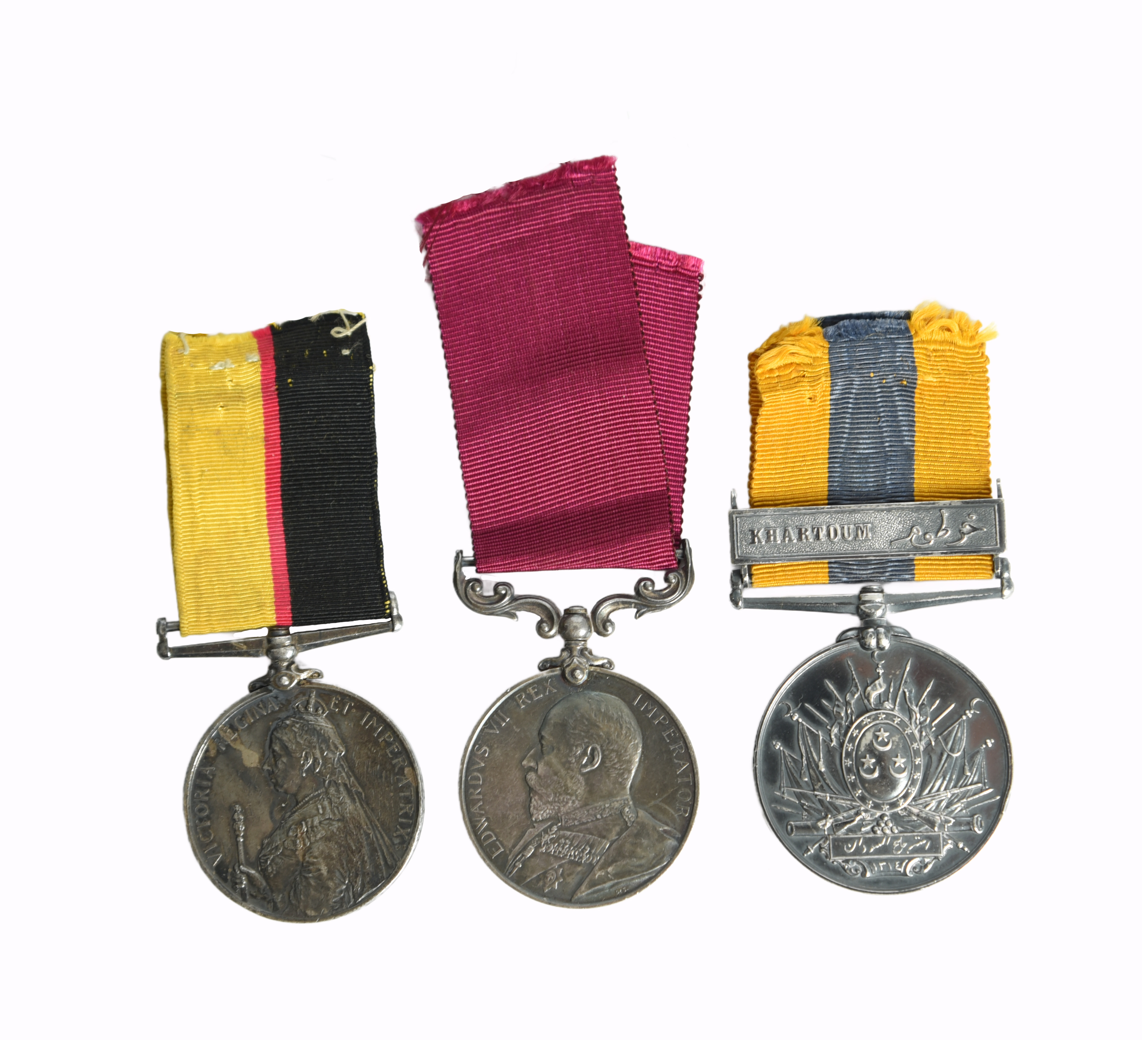 A Battle of Omdurman group of three medals to Corporal Arthur James Mansfield, 21st Lancers and Military Mounted Police: Queen's Sudan Medal 1896-98 (3515. L/CPL. A. MANSFIELD. 21/ L'CRS.), officially engraved, contact marks including edge bruising and scratching to the field, otherwise very fine and toned; Army Long Service and Good Conduct Medal, Edward VII (466 CPL A. J. MANSFIELD. M.M.P.) impressed in plain capitals, nearly extremely fine and toned; Khedive's Sudan Medal 1896-1908, clasp: Khartoum, unnamed as issued, about extremey fine and richly toned, [3]; together with ribbon bar, a photographic portrait of the recipient in the uniform of the 21st Lancers, an equestrian portrait in M.M.P. uniform, family photographs, and a small number of documents.
