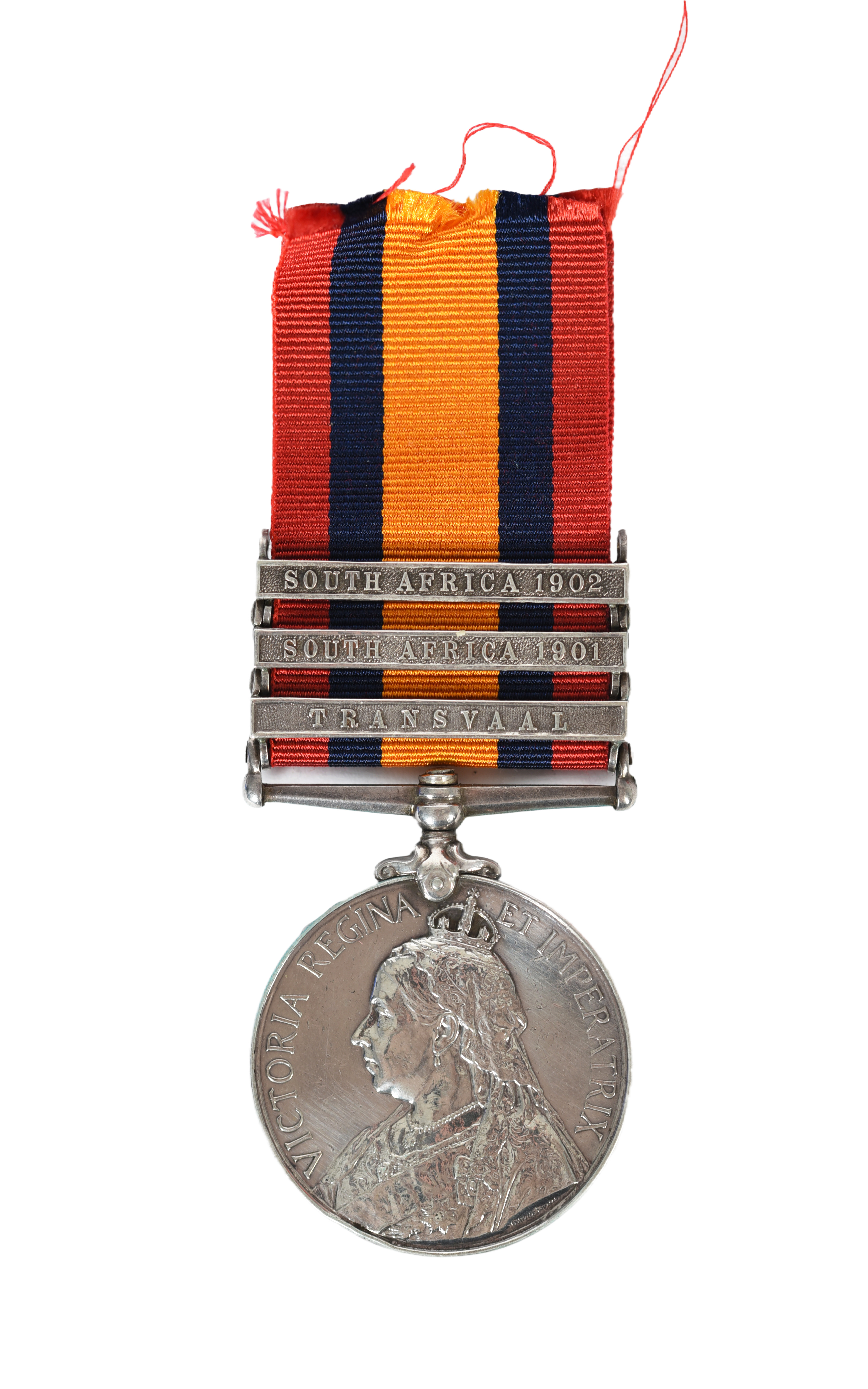A Queen's South Africa Medal 1899-1902 to Private B. Cleaves, 1st Battalion Rifle Brigade, 2nd type, 3 clasps: Transvaal, South Africa 1901 and South Africa 1902 (7427 PTE B. CLEAVES. RIFLE BRIGADE.), about very fine.