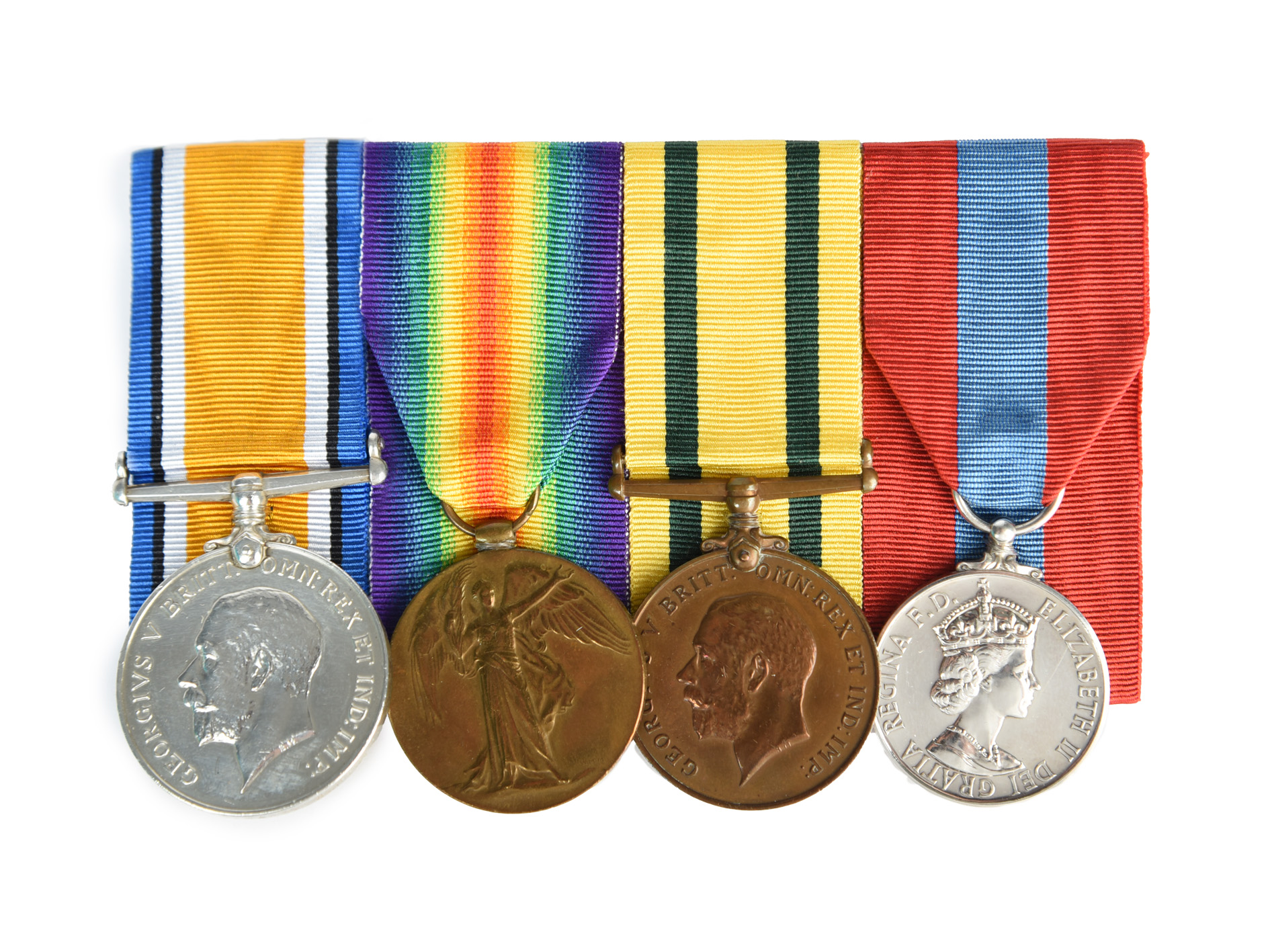 Three medals to Private William Ward, West Riding Regiment and Royal Artillery: British War Medal 1914-20 and Victory Medal (608370 PTE. W. WARD. W. RID. R.), Territorial Force War Medal (1132 GNR. W. WARD. R.A.), together with the Silver War Badge issued to this man, numbered 470509; the medals later mounted with an associated Imperial Service Medal, Elizabeth II (JOHN WILLIAM WARD), and accompanied by the box of issue for this medal; medals good very fine and better, SWB with soldered repair to pin fitting obscuring the first numeral of the serial number.