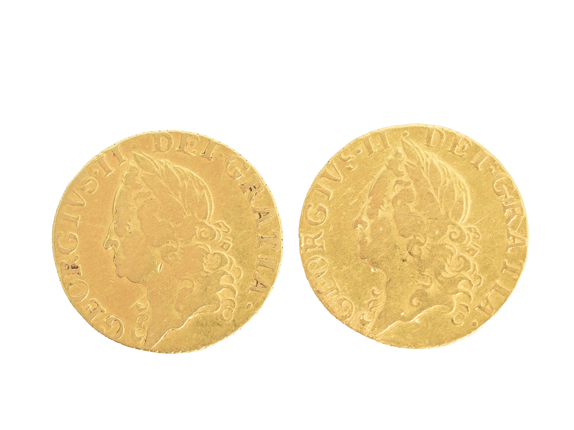 George II, gold half-guineas (2), 1753, 1755, old head, rev. shield of arms (S 3685), good fine. [2]