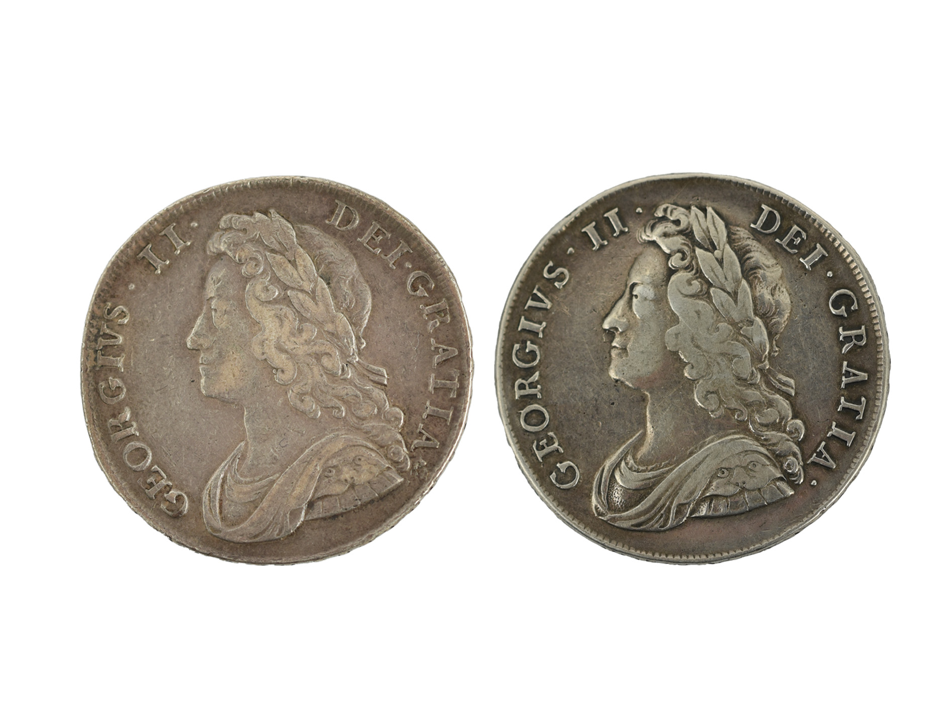 George II, silver halfcrowns (2), 1739, young bust, rev. roses in angles, edge DVODECIMO, near very fine, reverse better; 1741, edge DECIMO QVARTO, fine or better (S 3693). [2]