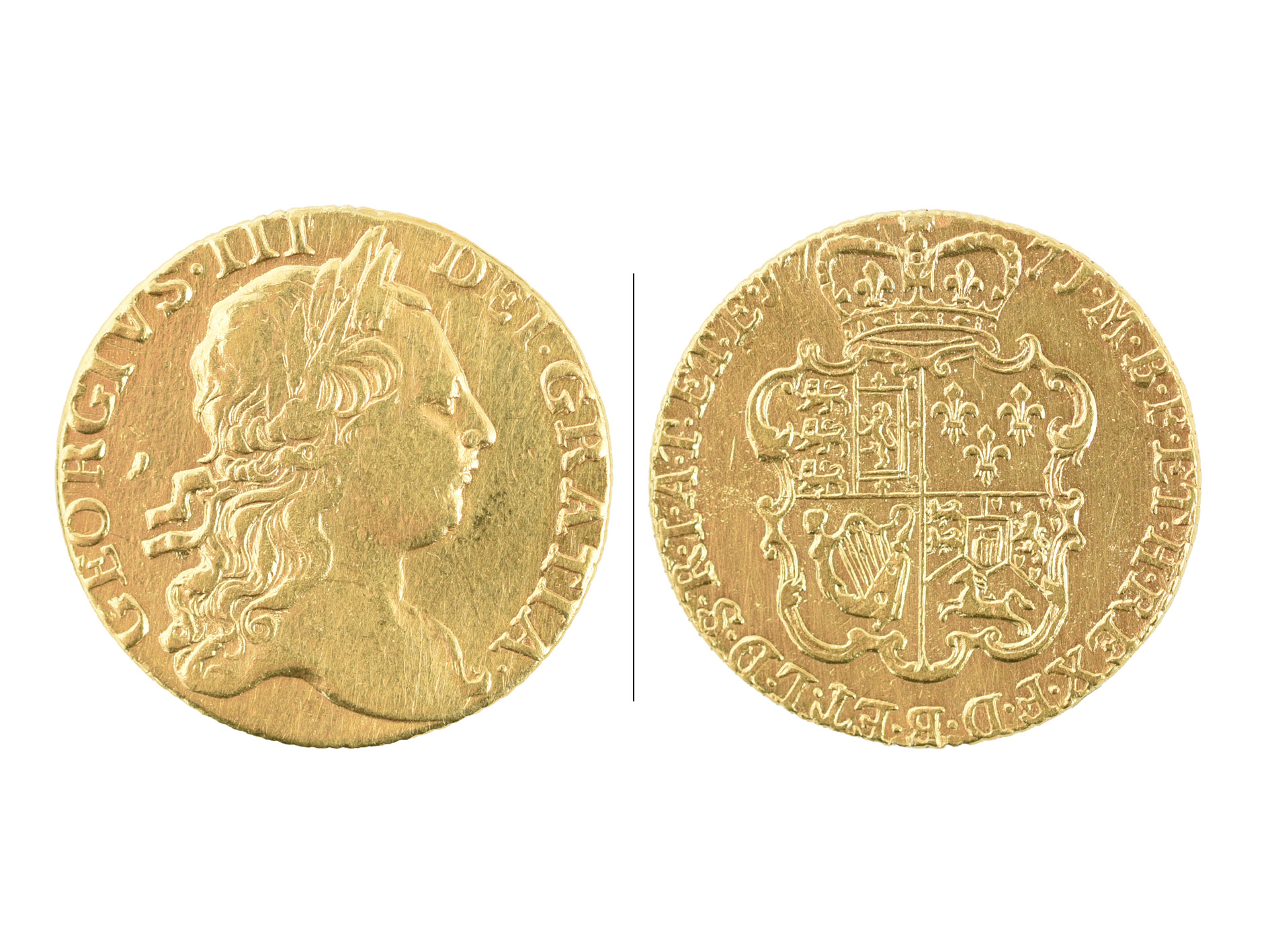 George III, gold guinea, 1771, third (young) head (S 3727), good fine.