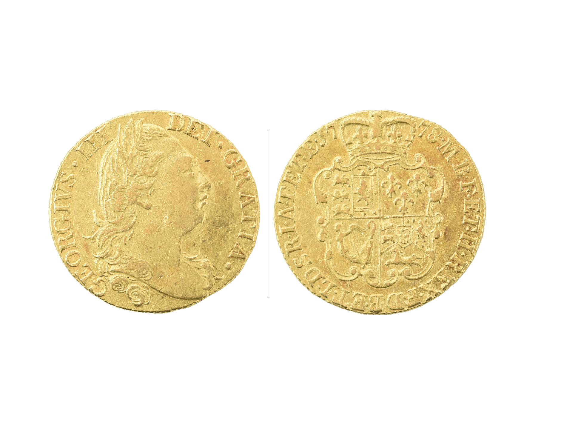 George III, gold guinea, 1778, fourth head, rev. E of REX struck over a slightly smaller E, (S 3728), about very fine and scarce.