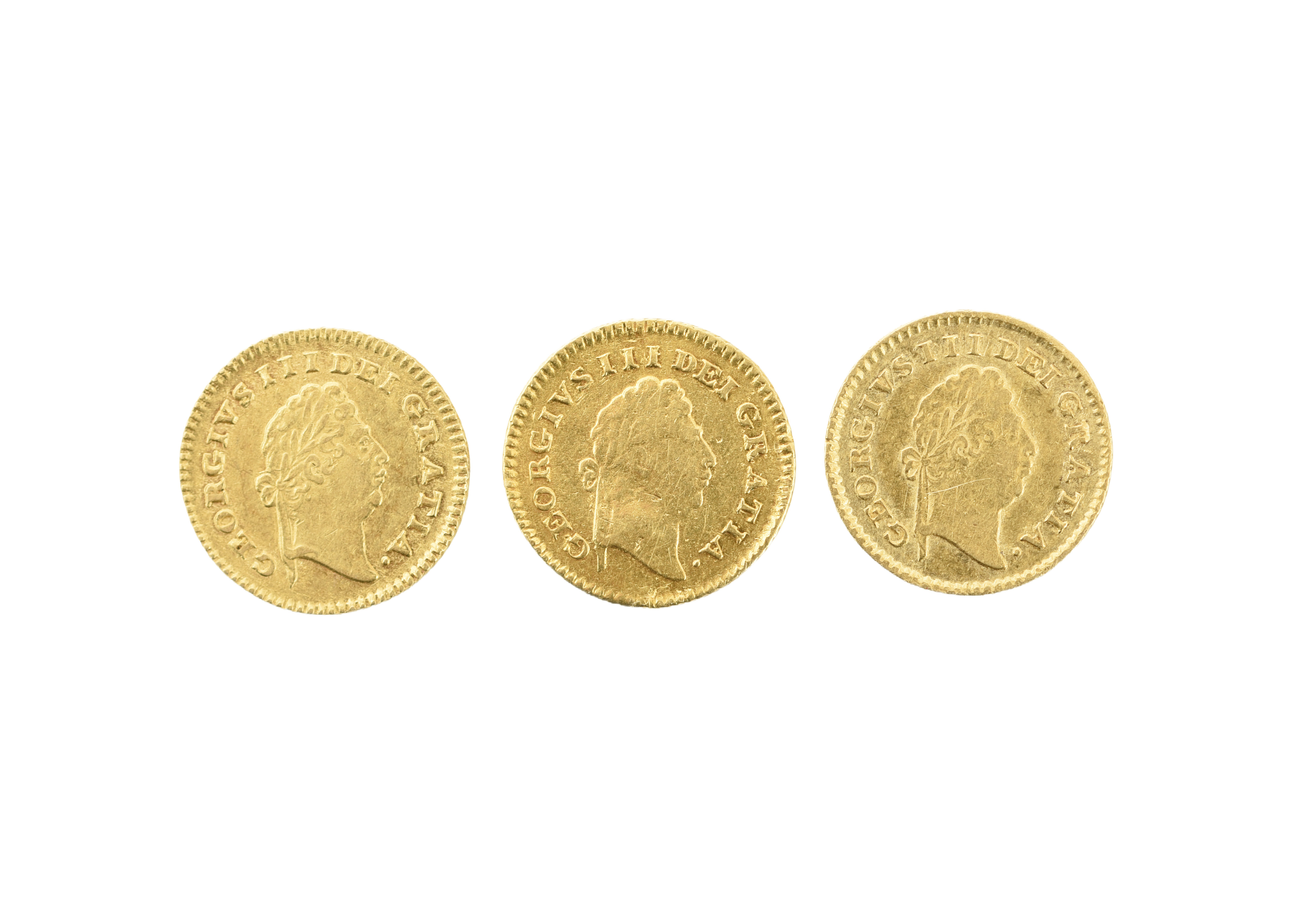 George III, gold third guineas (3), 1797, 1798 and 1800, first laureate head, rev. date in legend (S 3738), good very fine, fine and good fine. [3]