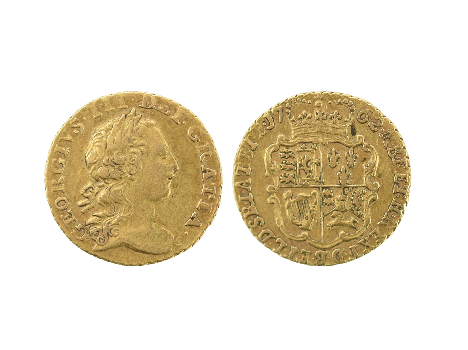George III, gold quarter-guinea, 1762, laureate head, rev. garnished shield (S 3741), near very fine.