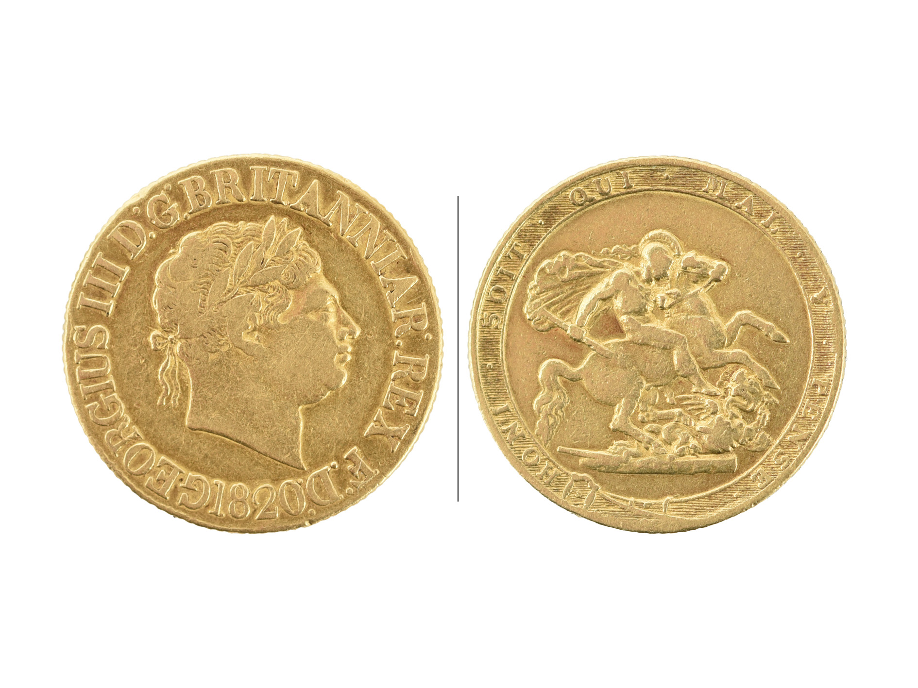 George III, gold sovereign, 1820, new coinage, legend type B, open 2 in date (S 3785C), fine.