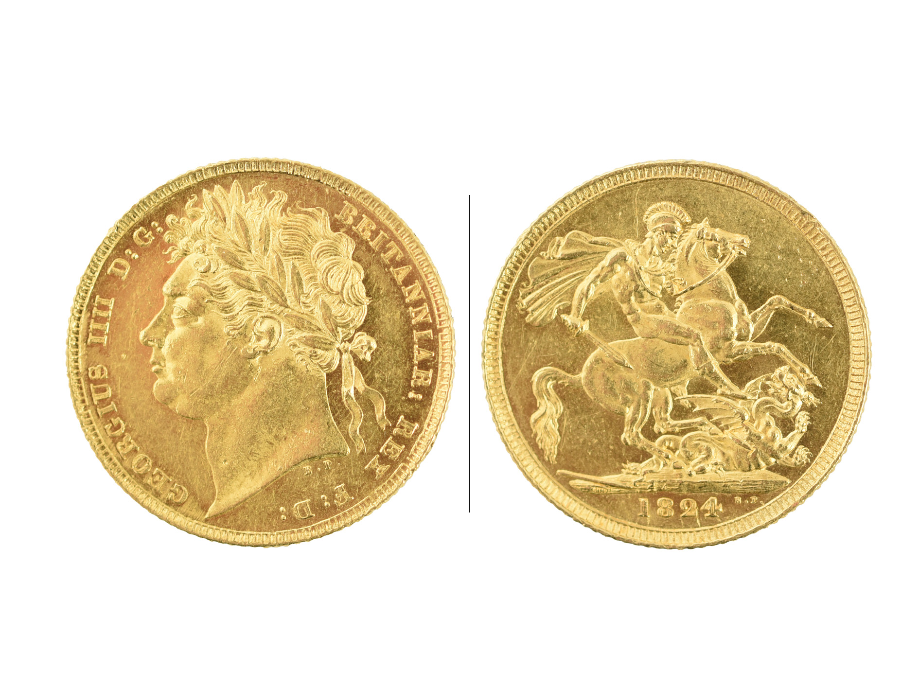 George III, gold sovereign, 1824, laureate head, rev. St George (S 3800), some surface marks but nearly extremely fine.