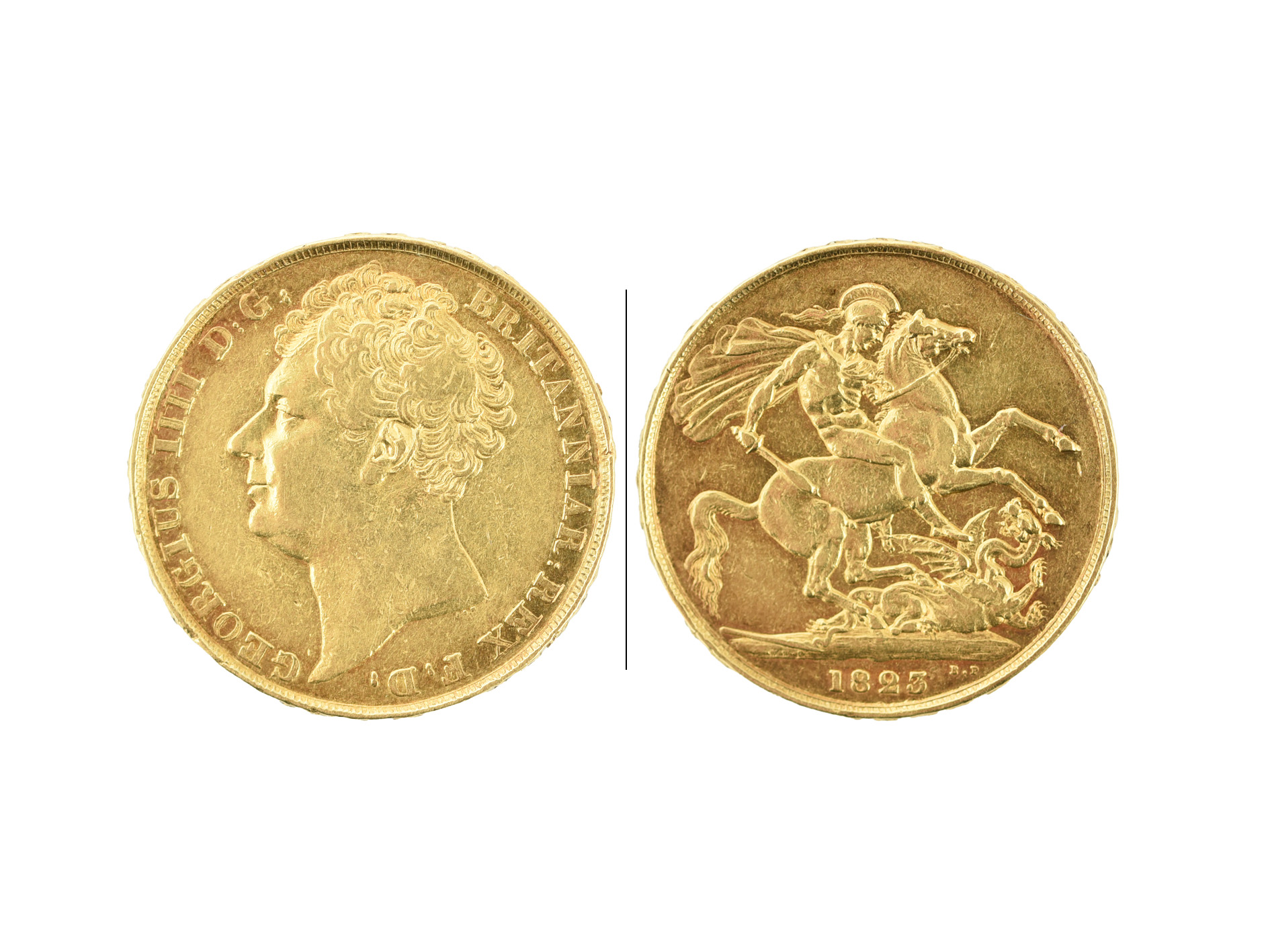 George IV, gold two pounds, 1823, large bare head, rev. St George, edge IV (S 3798), very fine.