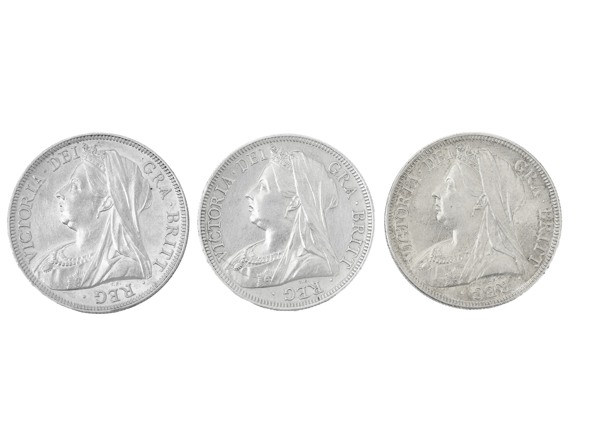 Victoria, silver half crowns (3), 1896-1898, veiled bust (S 3938), about extremely fine, the last extremely fine. [3]
