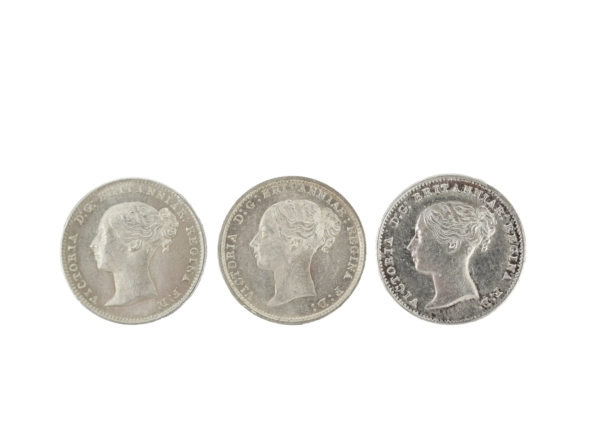Victoria, silver threepence (3), 1865 and 1866 (S 3914A), good very fine and nearly extremely fine; 1882 (S 3914D), nearly extremely fine. [3]