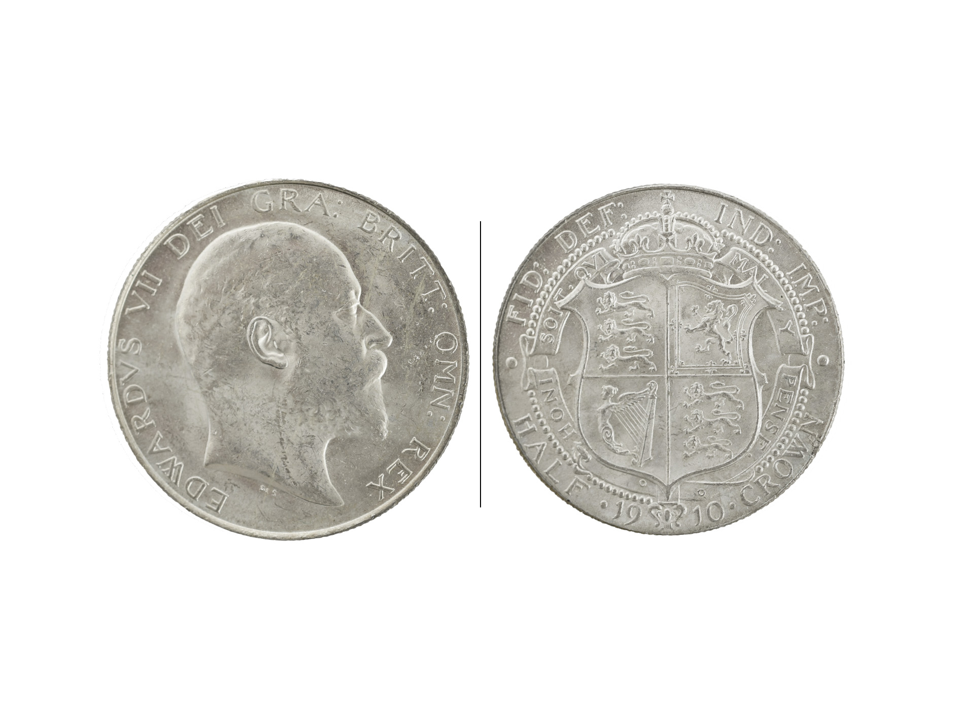 Edward VII, silver halfcrown, 1910 (S 3980), about extremely fine.