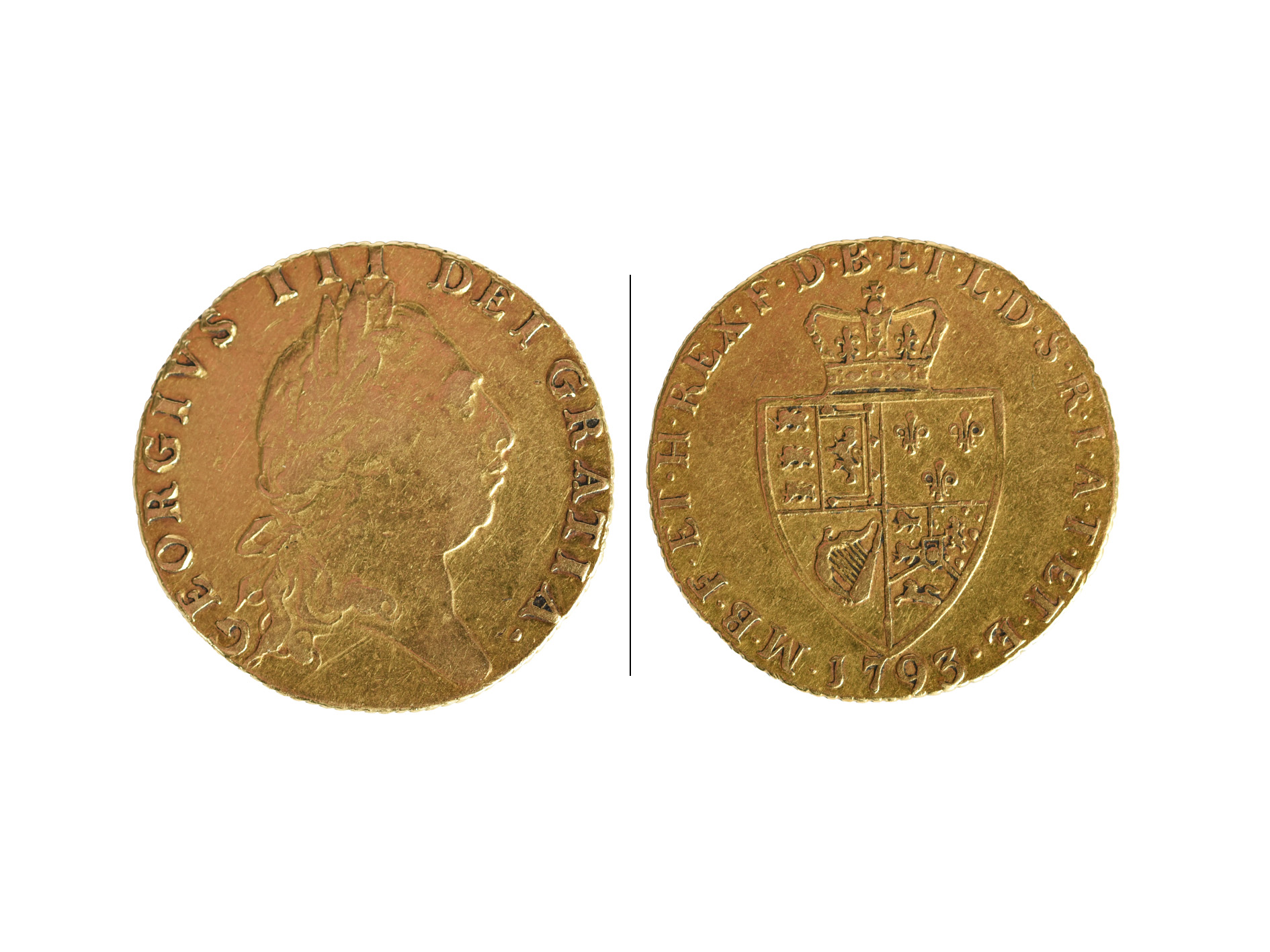 George III, gold guinea, 1793, fifth head, 'spade' reverse (S 3729, F 356), fine.