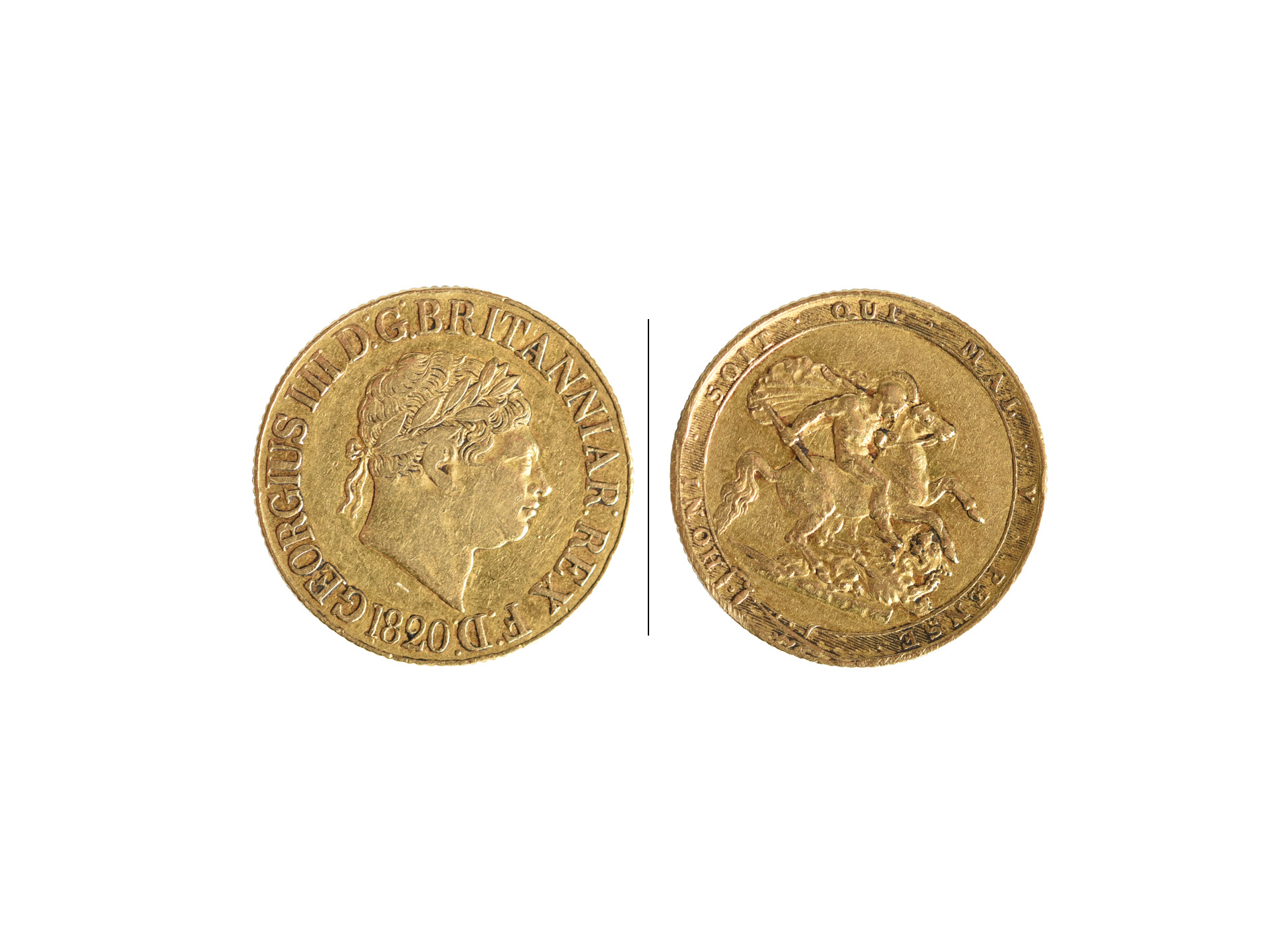George III, gold sovereign, 1820, New Coinage, open 2 (S 3785C, F 371), good fine.