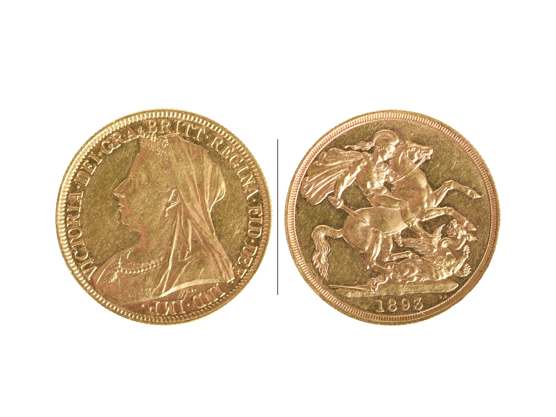 Victoria, gold two pounds, 1893, veiled bust (S 3873, F 395), nearly extremely fine.