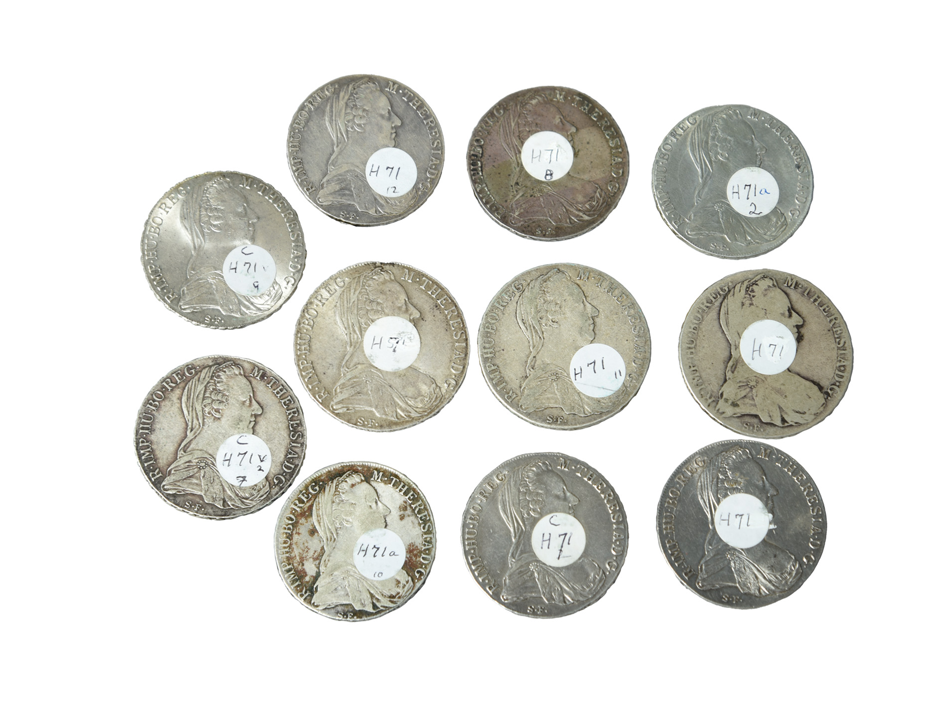 Austria: Maria Theresa, silver thalers (11), 1780 SF, restrikes, Rome, struck c. 1935-39 (Hafner 71 or variants), fine to nearly extremely fine. [11]