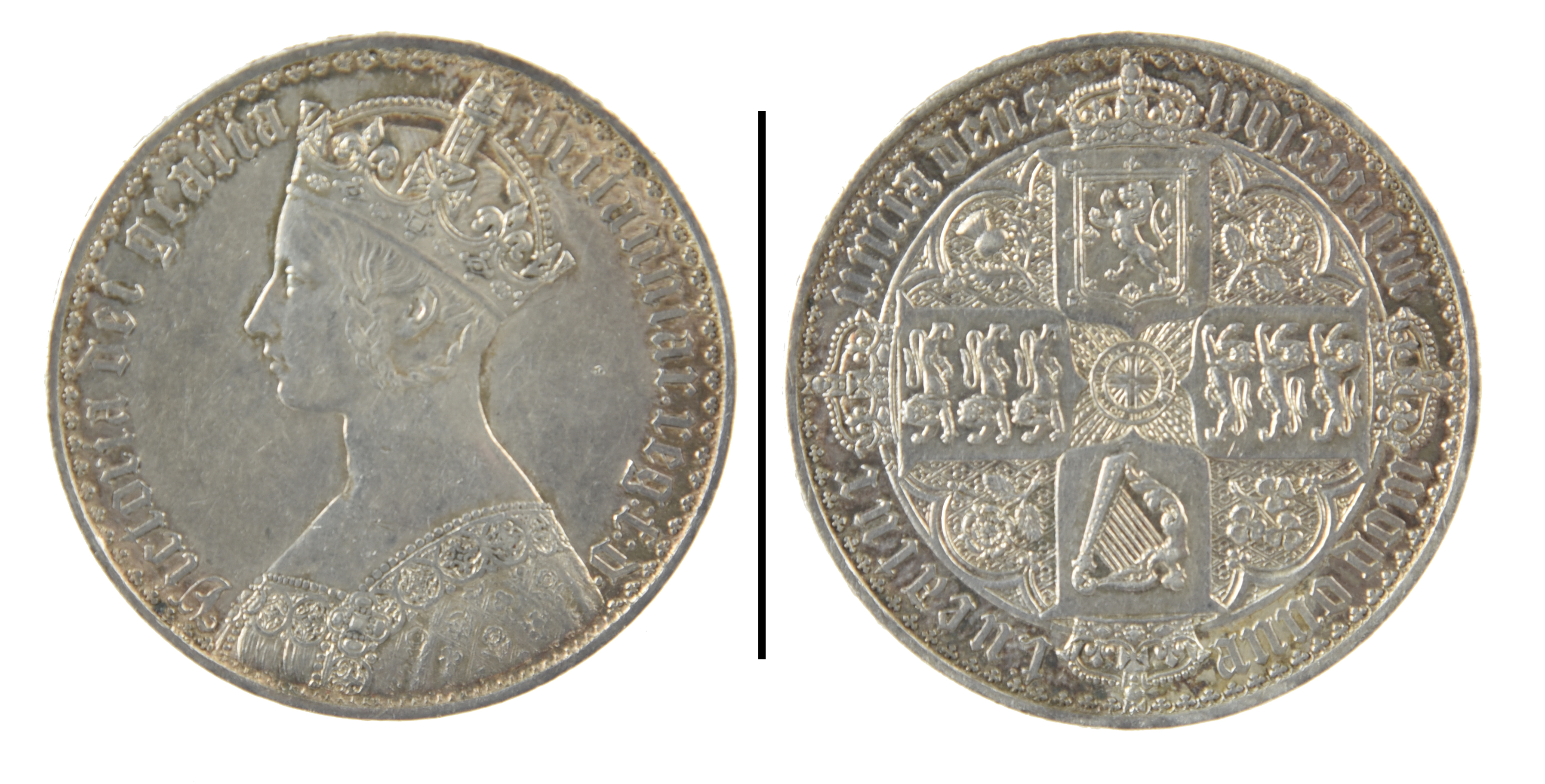 Victoria, silver crown, 1847, 'gothic' type, edge UNDECIMO (S 3883), edge holed for mounting,