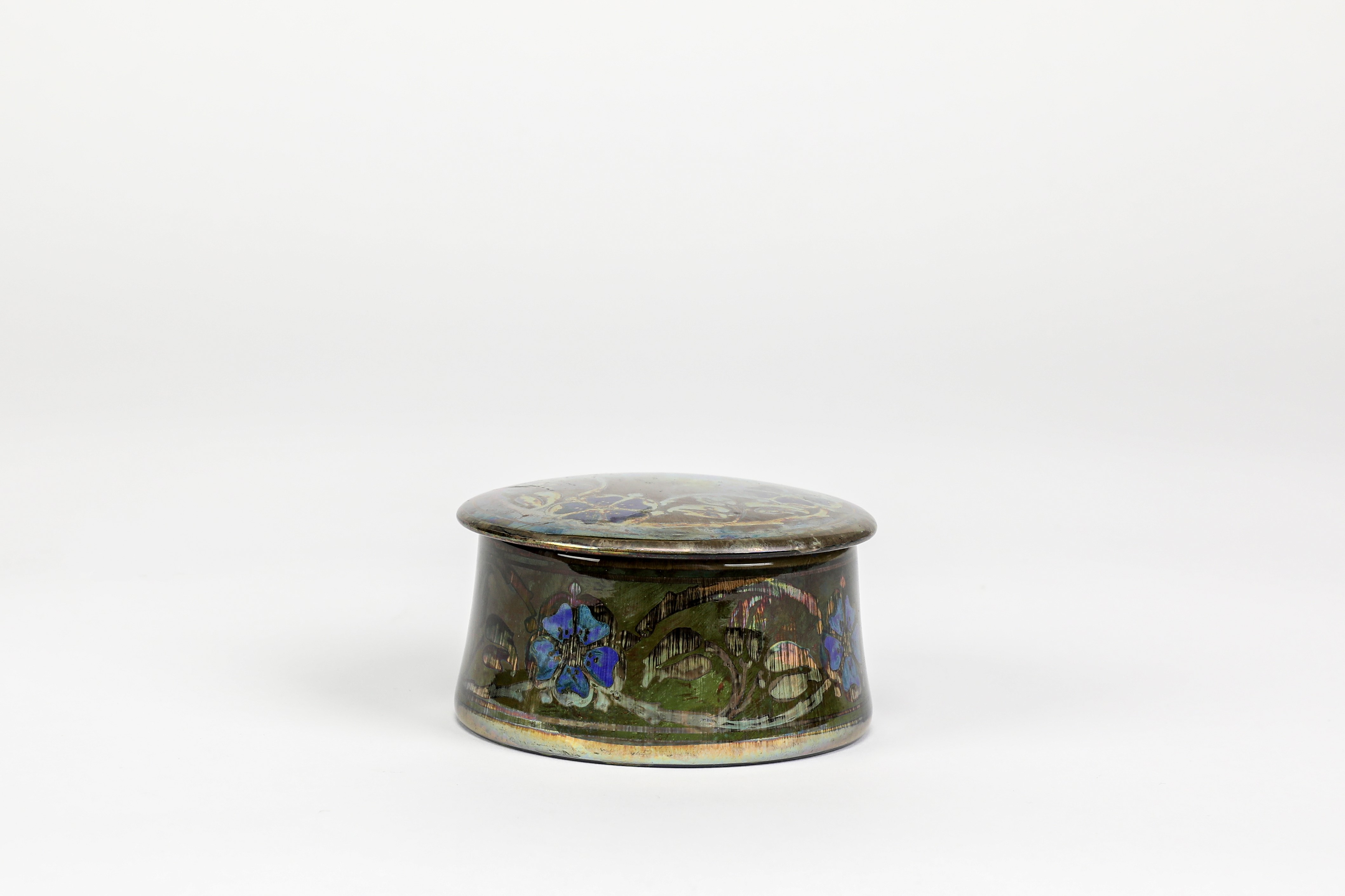 decorated in silver and gold lustre, painted with blue flower motifs