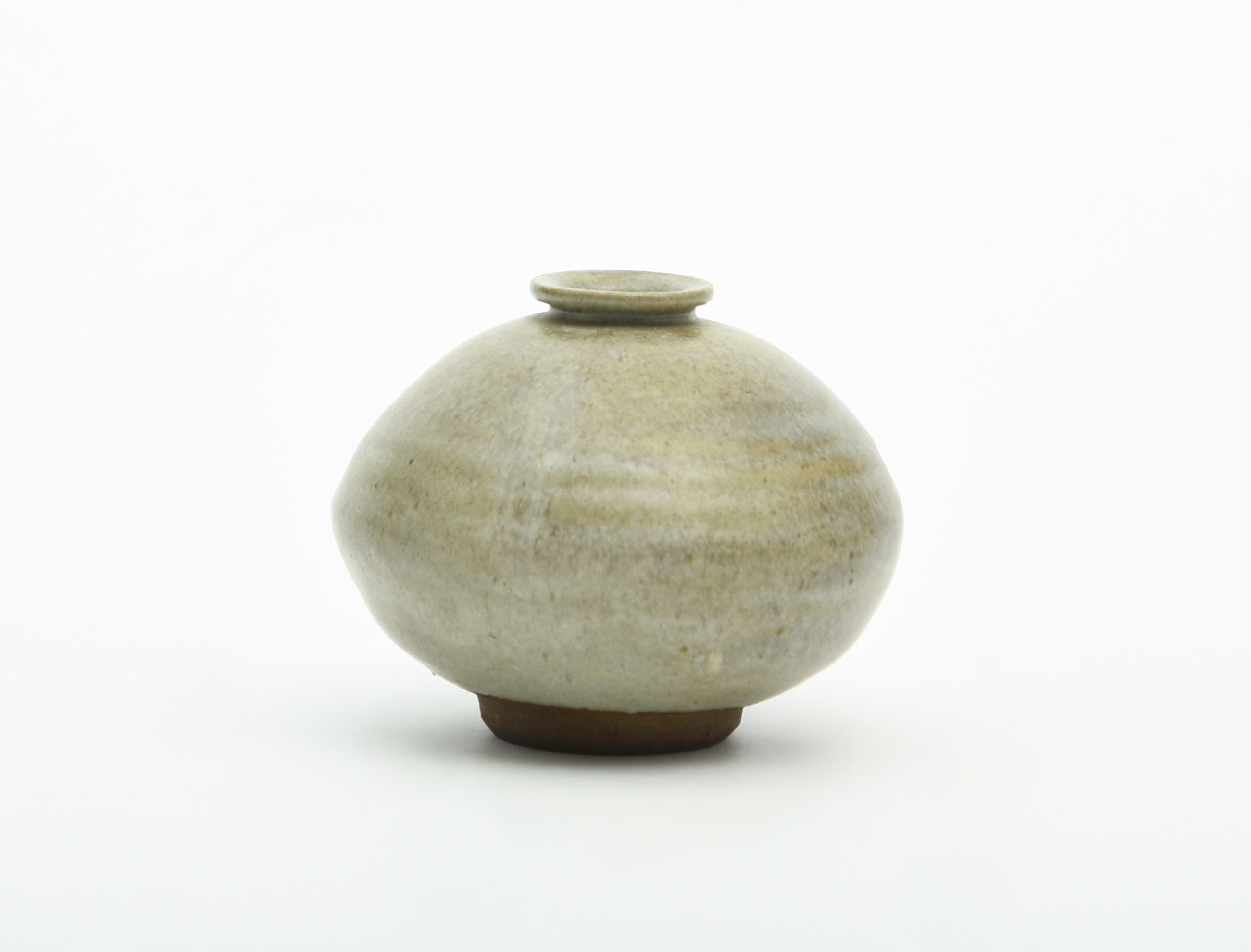 globular form, with a grey glaze with green inclusions
