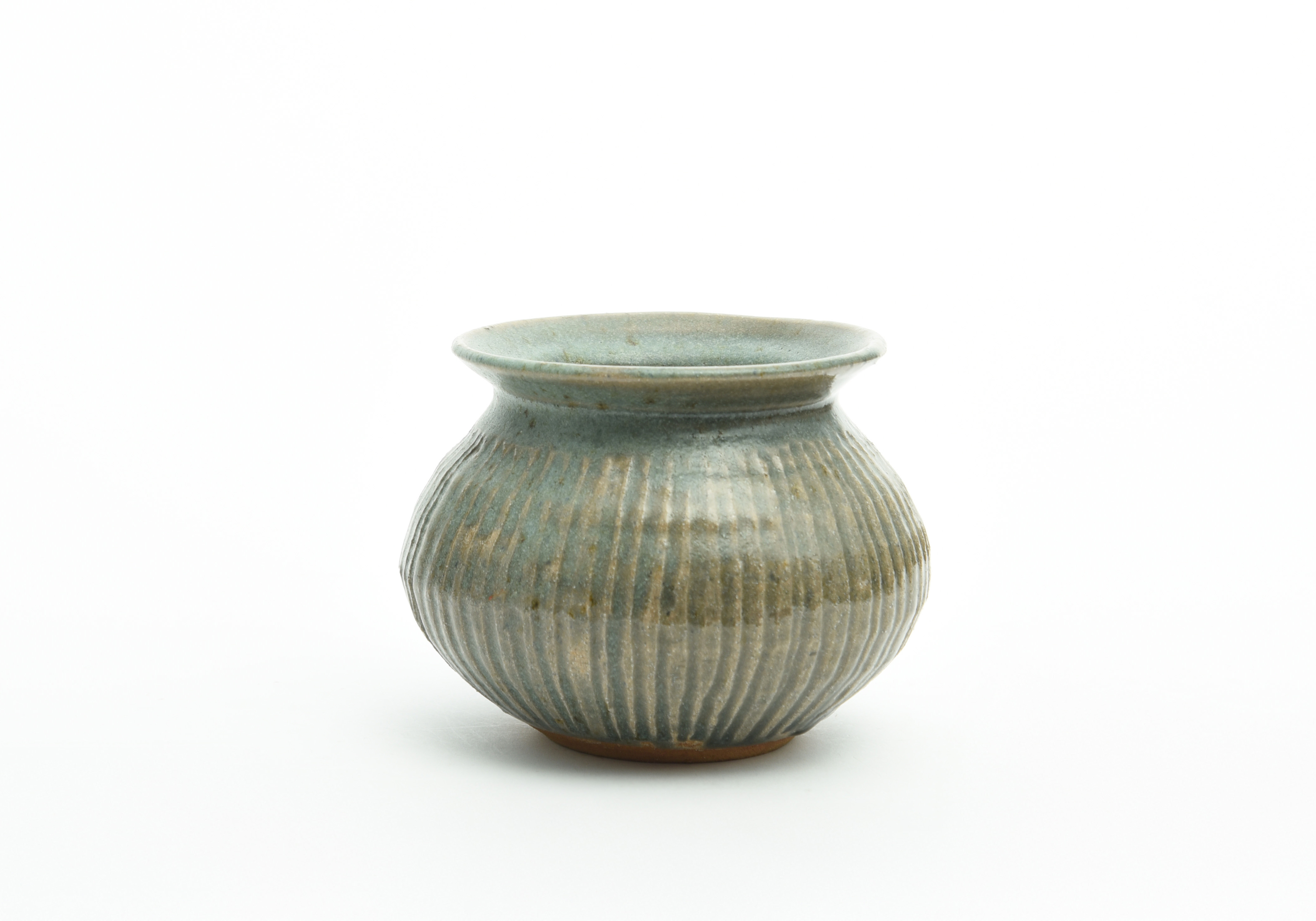 fluted, covered in a green and grey glaze