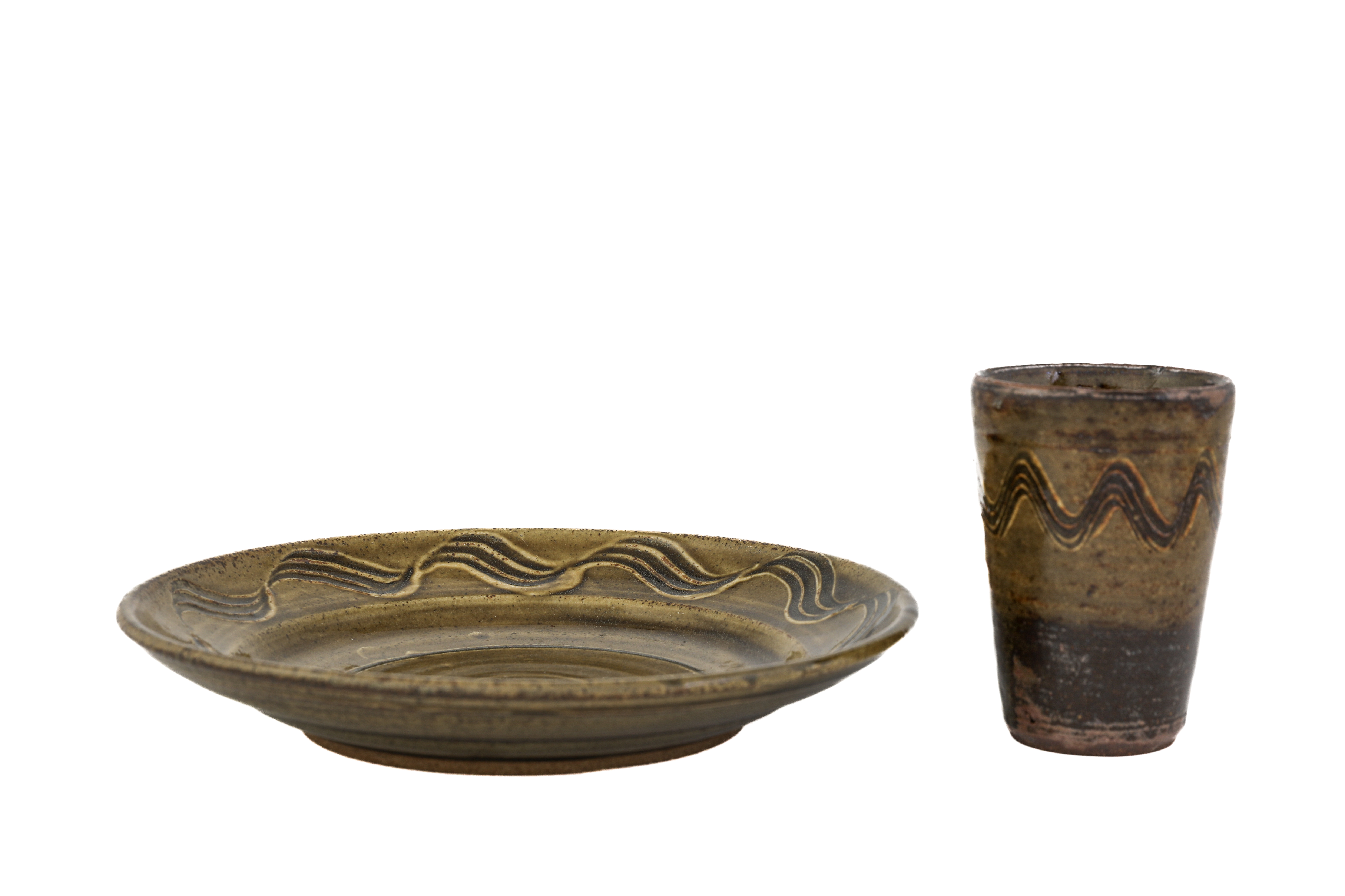 with a green glaze with combed decoration