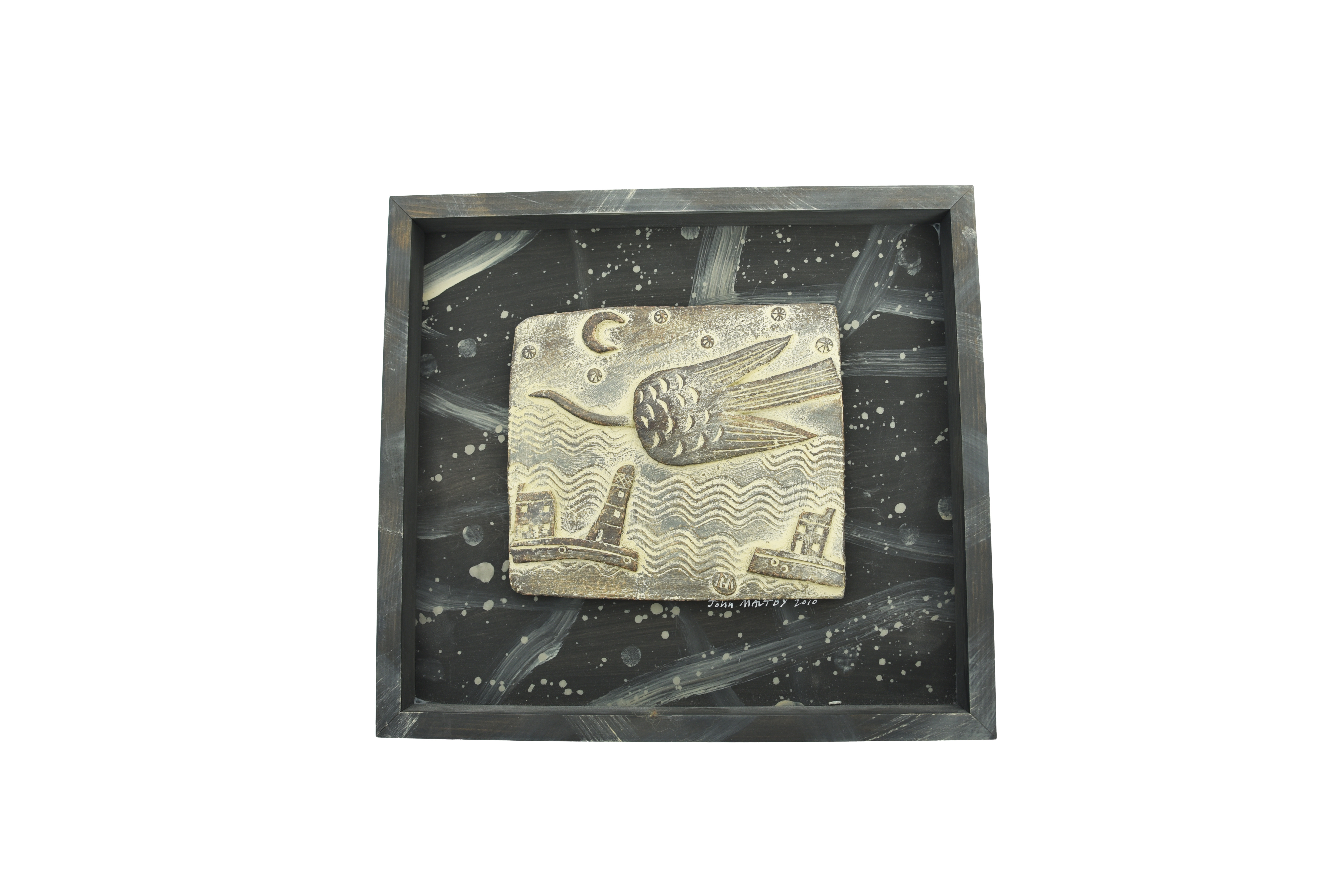 a stoneware tile in a painted wooden frame