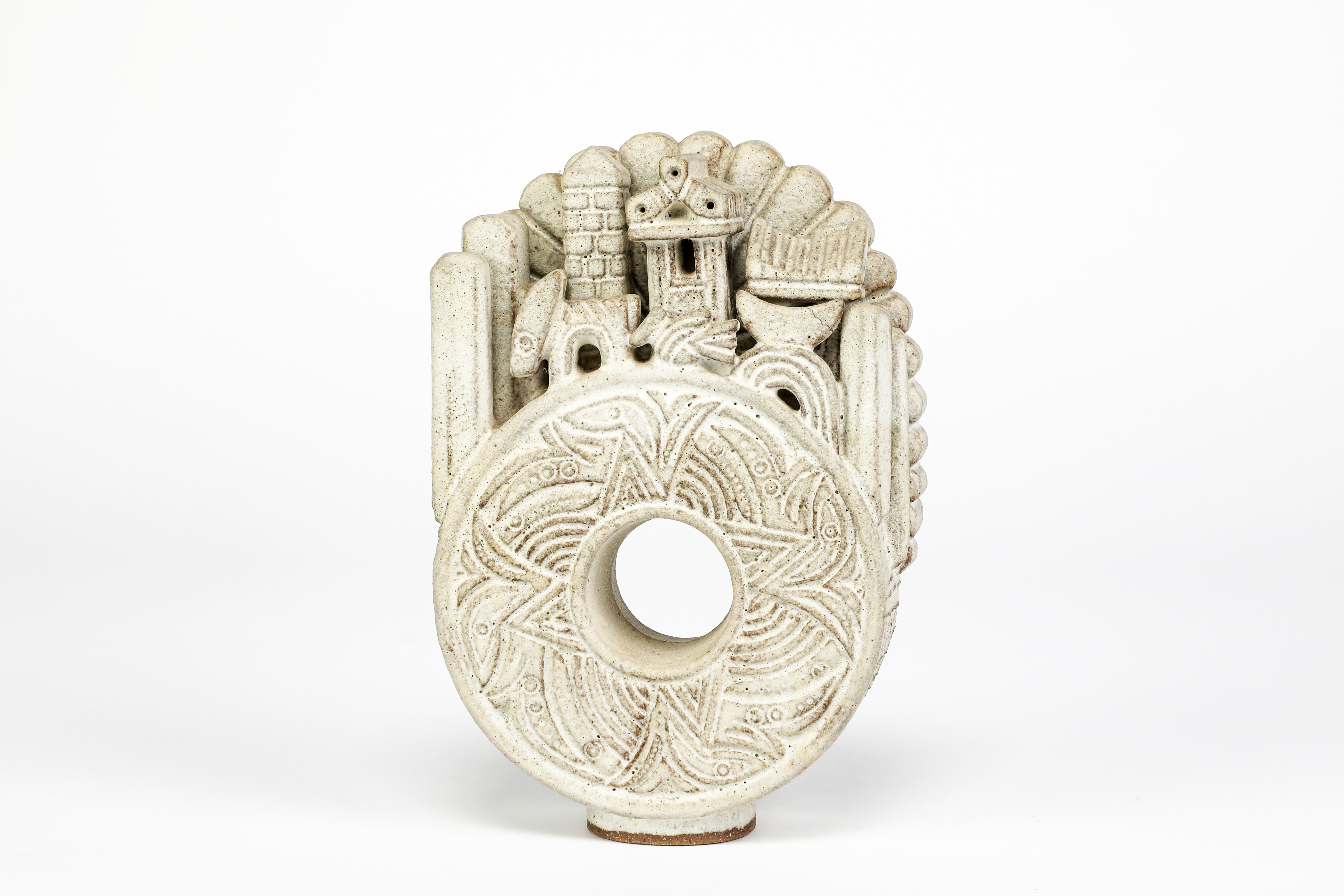 stoneware sculpture covered in an oatmeal glaze