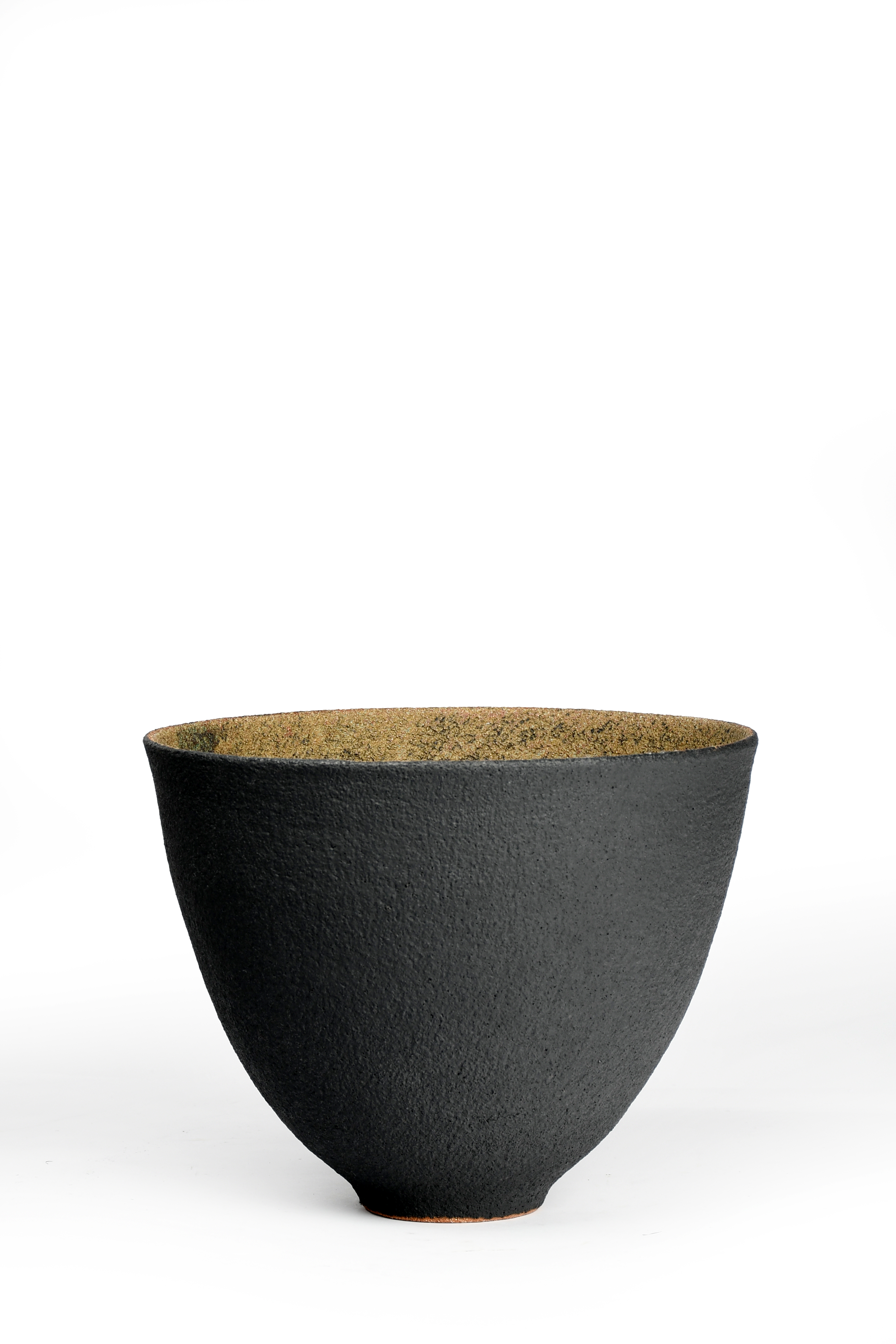 covered in a textured black glaze to the exterior, the interior with a mottled brown glaze